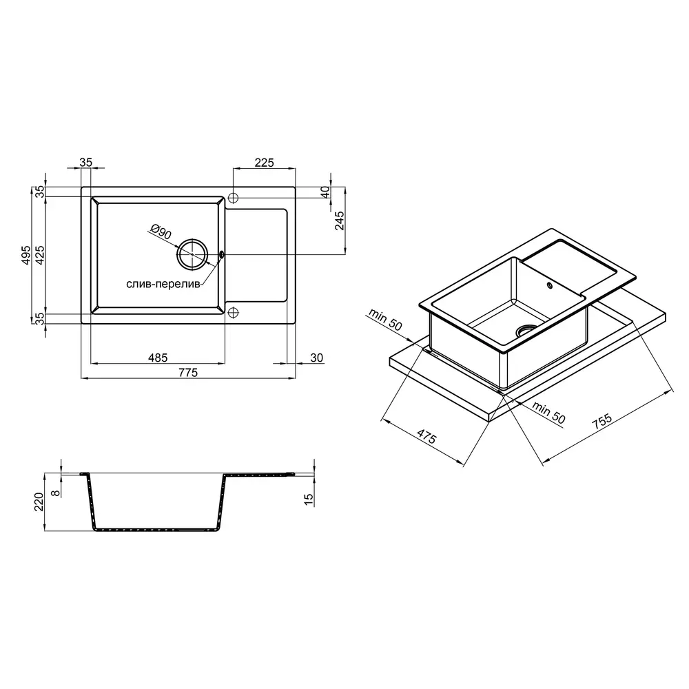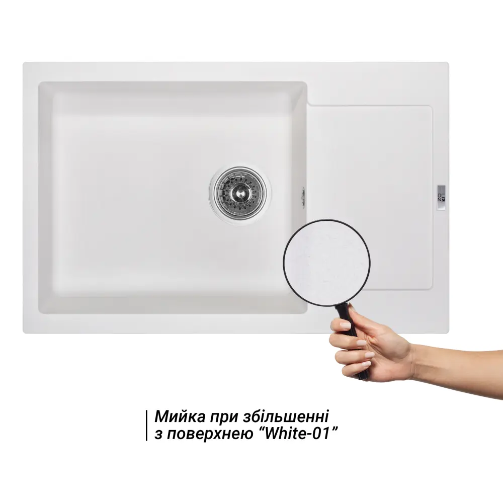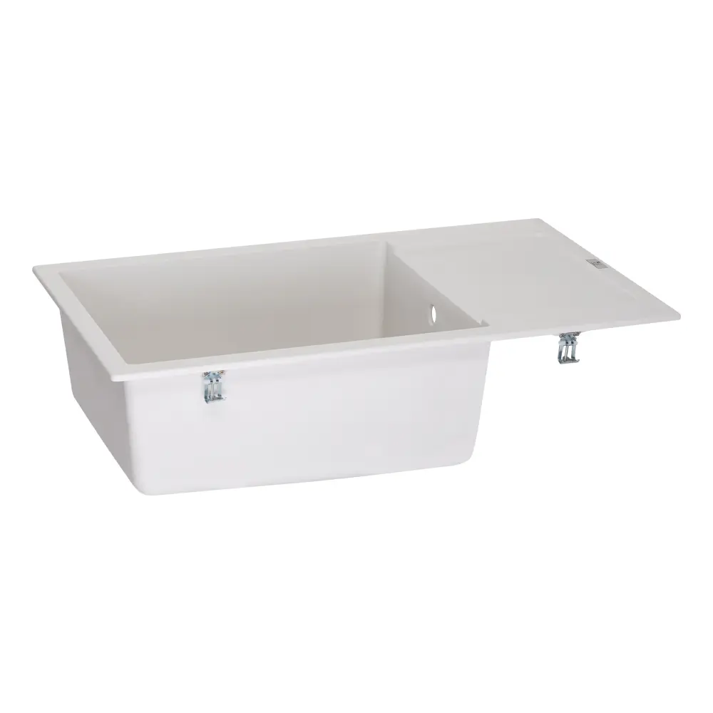 Кухонная мойка Lidz 781x510 / 200 WHI-01 (LIDZWHI01781510200) изготовлена ?? из качественного искусственного камня, имеет матовую поверхность и будет хорошо смотреться в сочетании со смесителем того же цвета. Изделие монтируется врезным способом в подготовленное отверстие в столешнице. Мойка выполнена из рабочей чашей и крылом, на ней есть отверстие слив-перелив и заготовка для отверстия под смеситель. Отличное качество и дизайн мойки удовлетворят найвибагливи требования.
