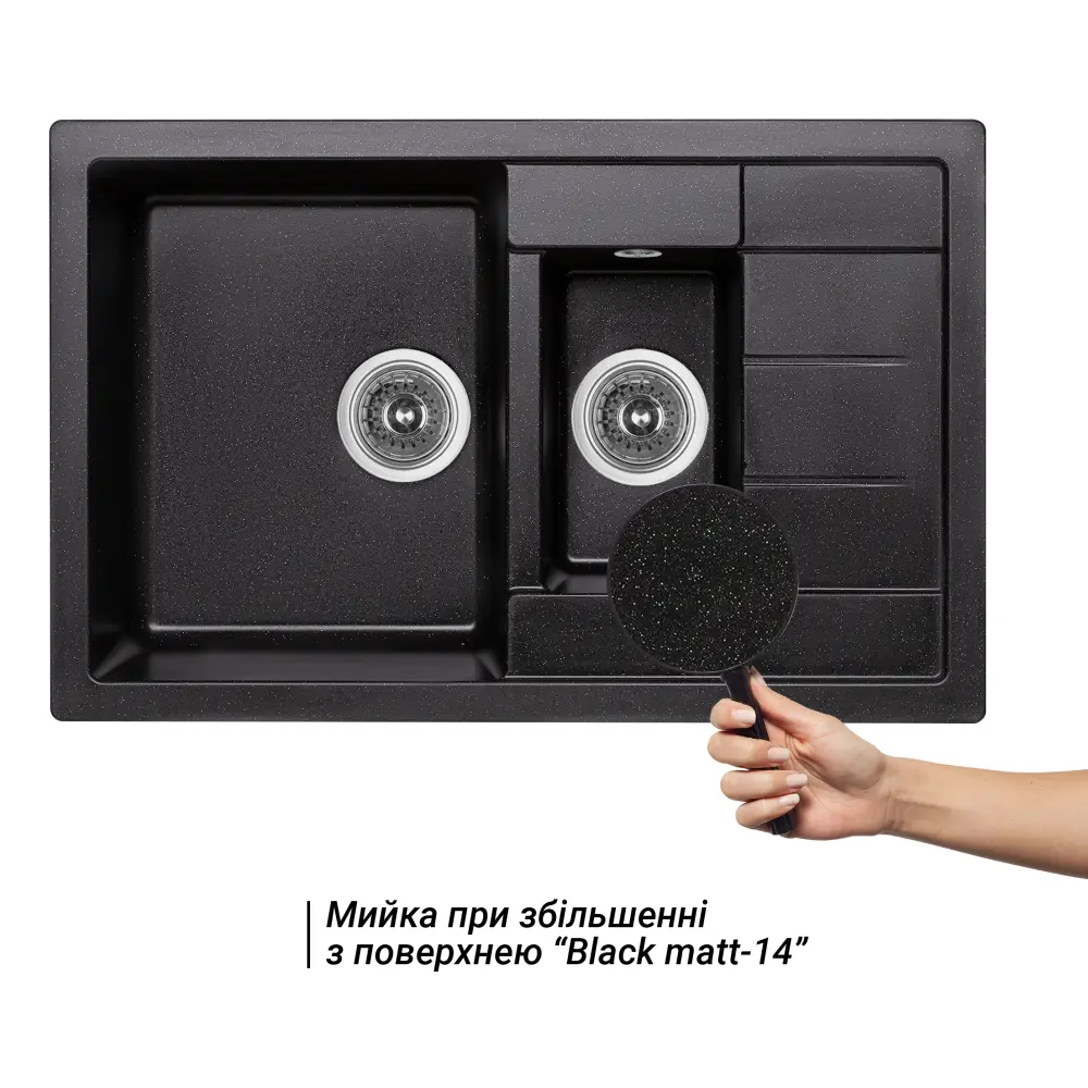 Кухонная мойка Lidz 780x495 / 200 BLM-14 (LIDZBLM14780495200) изготовлена ?? из качественного искусственного камня, имеет матовую поверхность и будет хорошо смотреться в сочетании со смесителем того же цвета. Изделие монтируется врезным способом в подготовленное отверстие в столешнице. Мойка выполнена из основной и дополнительной чашами с отверстием слив-перелив и заготовкой для отверстия под смеситель, а также вместительным крылом. Отличное качество и дизайн мойки удовлетворят найвибагливи требования.