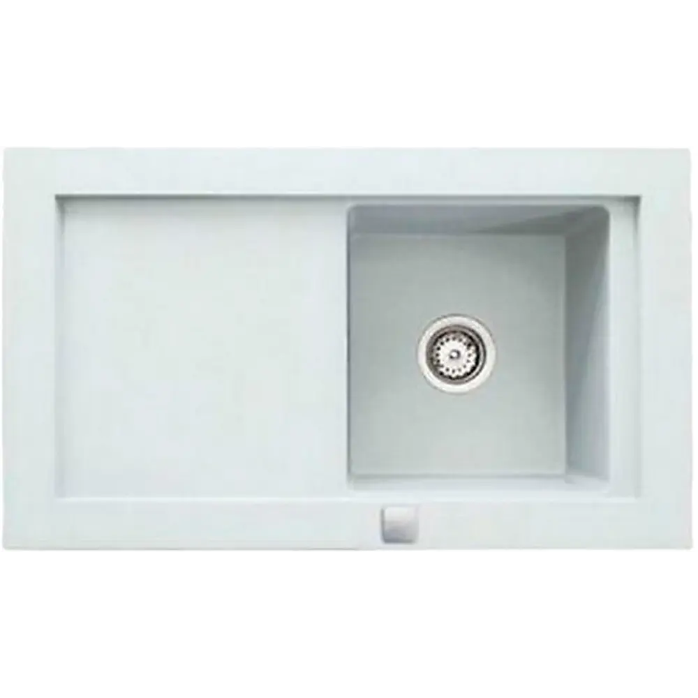 Прямоугольная мойка для кухни врезная Teka AURA 60B TG (88401) белый с тегранита, с двумя чашами и крылом слева. P>