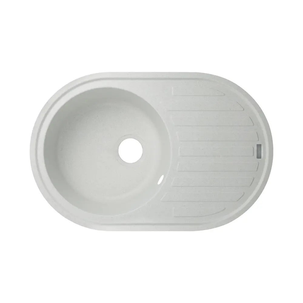 Кухонна мийка GF (STO-10) 780x500/200 виготовлена з високоякісного граніту, має світло-сіру матову поверхню, тому буде добре виглядати зі змішувачем того ж кольору. Відмінна якість та дизайн мийки задовольнять найвибагливі побажання й створять затишок у вашому домі! Вона виконана з робочою чашею з отвором злив-перелив і ребристим крилом для сушіння посуду або розморожування продуктів. На крило нанесено фірмовий логотип виробника. Кухонна мийка монтується урізним способом в отвір в стільниці.