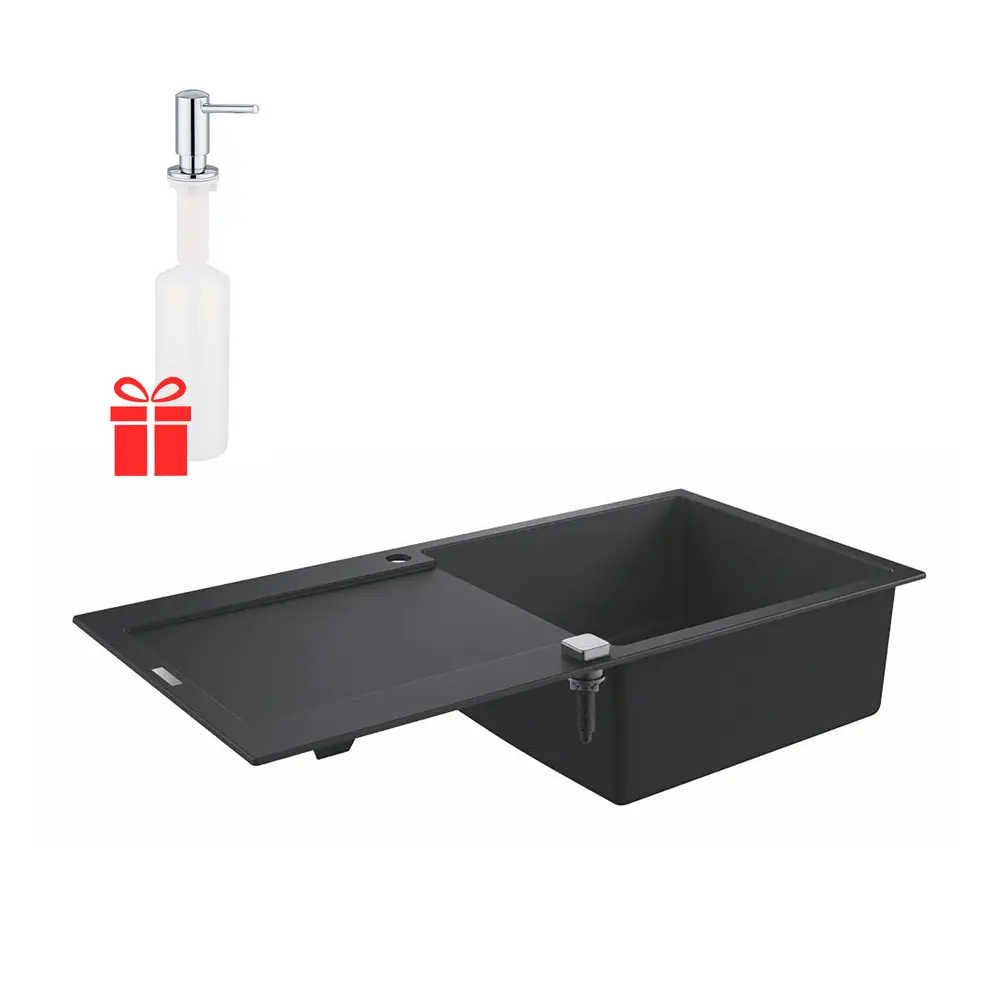 Набір Grohe мийка кухонна K500 31645AP0 + дозатор для миючого засобу Contemporary 40536000 стане незамінним атрибутом будь-якої сучасної кухні. Мийка виготовлена ??з кварцевого композиту, який складається з 80% кварцу і 20% акрилової смоли та затверджувача. Ізоляція GROHE Whisper на нижній частині мийки зменшує шум. Дозатор призначений для зберігання миючого засобу або рідкого мила. Він встановлюється під стільницю або під раковину. Обсяг резервуара - 500 мл.