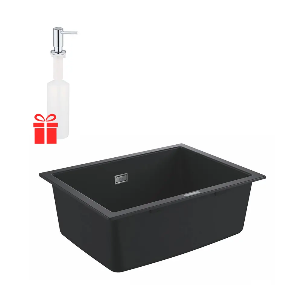 Набір Grohe мийка кухонна K700 Undermount 31655AP0 + дозатор для миючого засобу Contemporary 40536000 стане незамінним атрибутом будь-якої сучасної кухні. Мийка виготовлена ??з кварцевого композиту, який складається з 80% кварцу і 20% акрилової смоли та затверджувача. Ізоляція GROHE Whisper на нижній частині мийки зменшує шум. Дозатор призначений для зберігання миючого засобу або рідкого мила. Він встановлюється під стільницю або під раковину. Обсяг резервуара - 500 мл.