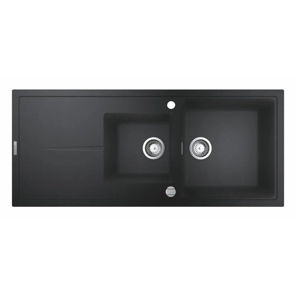 Кухонна мийка Grohe Sink 31643AP0 виготовлена з кварцового композиту, який складається з 80% кварцу та 20% акрилової смоли й затверджувача. Завдяки системі GROHE QuickFix установлення мийки не візьме багато часу та не потребує додаткового обладнання. Мийка виконана з робочою чашею, додатковою для розморожування продуктів, отвором для змішувача та крилом для сушіння посуду. Ізоляція GROHE Whisper на нижній частині мийки зменшує шум, є автоматичний сміттєзбірник з дистанційним управлінням.