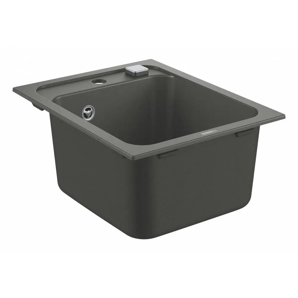 Кухонна мийка Grohe Sink 31650AT0 виготовлена з кварцового композиту, який складається з 80% кварцу та 20% акрилової смоли й затверджувача. Завдяки системі GROHE QuickFix установлення мийки не візьме багато часу та не потребує додаткового обладнання. Мийка виконана у вигляді однієї чаші з отвором злив-перелив, отвором під змішувач і ексцентриком для дистанційного підняття клапана. Ізоляція GROHE Whisper на нижній частині мийки зменшує шум, а обробка Granite Black не реагує на ультрафіолет.