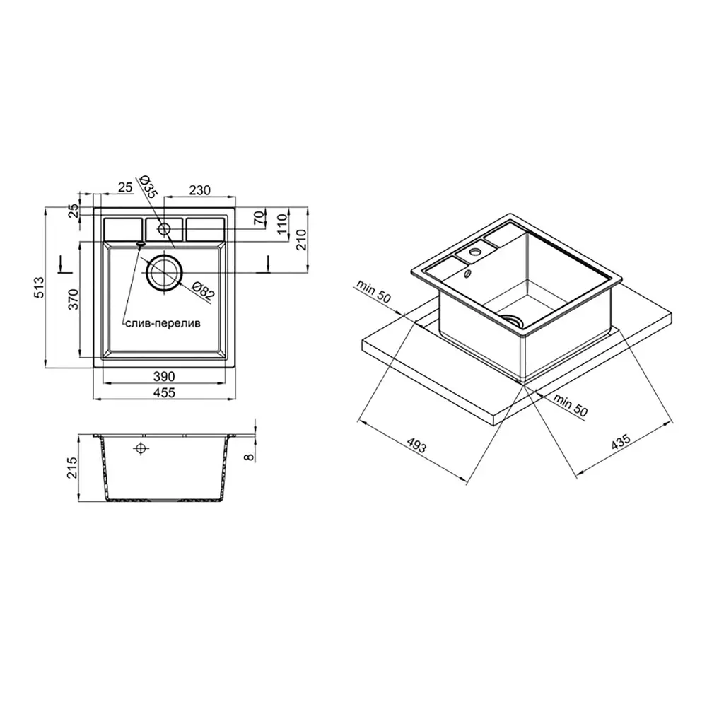 Кухонна мийка Lidz (BLA-03) 460х515/200 виготовлена ??з якісного штучного каменю, з отвором під змішувач, має матову поверхню. Відмінна якість і дизайн мийки дозволять задовольнити найвищі вимоги. Вона виконана з робочою чашею, з отвором під злив-перелив. Мийка монтується урізним способом в отвір в стільниці.