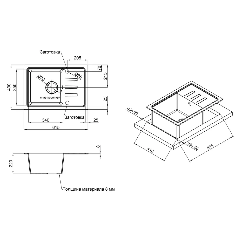 Кухонна мийка Lidz 620x435/200 GRF-13 (LIDZGRF13620435200) виготовлена з якісного штучного каменю, має графітову матову поверхню, тому буде чудово виглядати зі змішувачем того ж кольору. Відмінна якість та дизайн мийки задовольнять найвибагливі вимоги. Вона виконана з робочою прямокутною чашею з отвором злив-перелив та ребристим крилом для сушіння посуду або розморожування продуктів. Кухонна мийка монтується урізним способом в отвір в стільниці.
