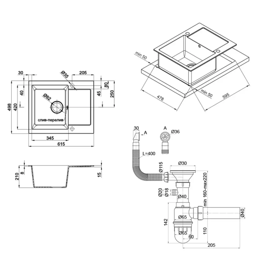 Кухонна мийка Lidz (BLM-14) 625x500/200 виготовлена ??з якісного штучного каменю, має матову поверхню. Відмінна якість і дизайн мийки дозволять задовольнити найвищі вимоги. Вона виконана з робочою чашею з отвором під злив-перелив і ребристим крилом для сушіння посуду або розморожування продуктів. Мийка монтується урізним способом в отвір в стільниці.