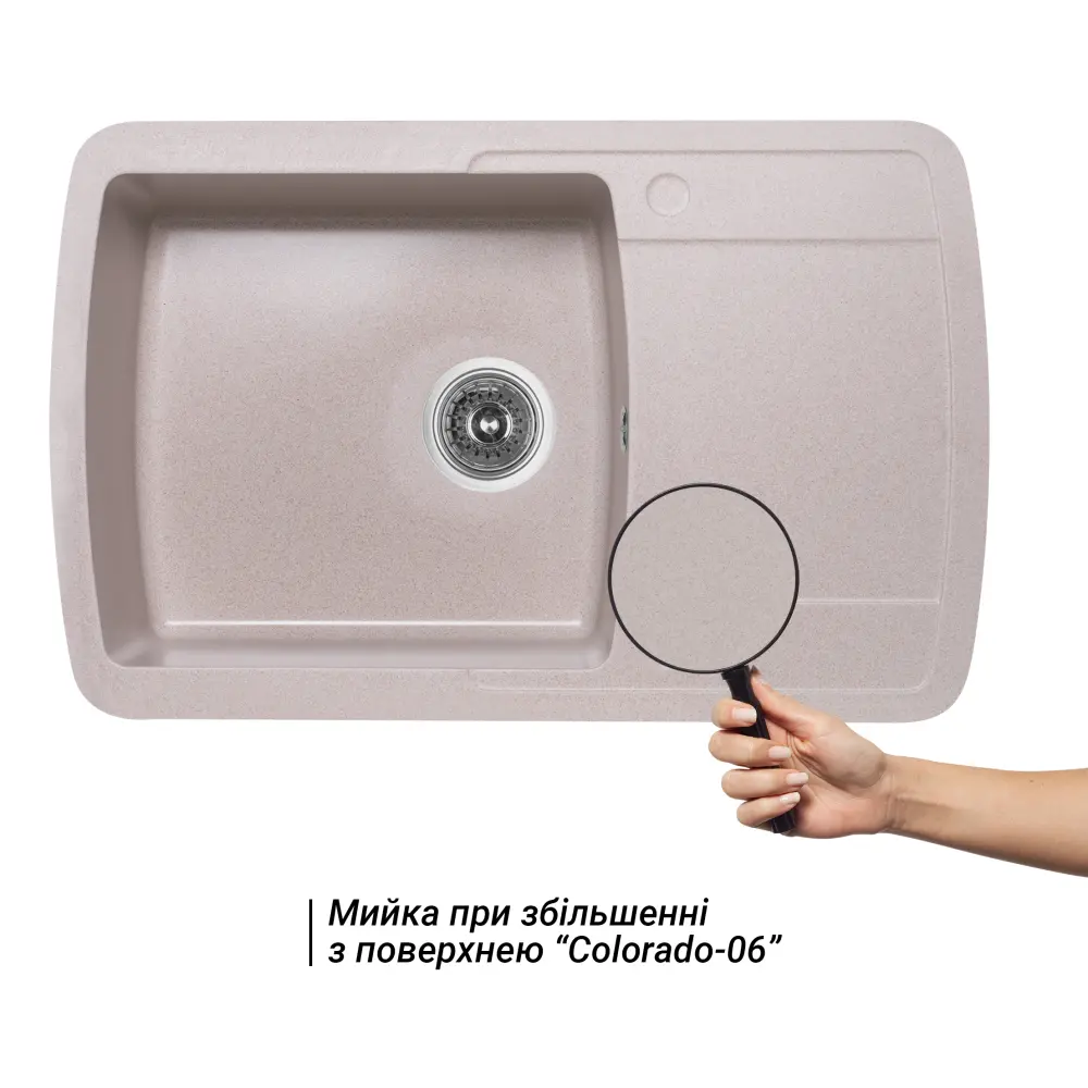 Кухонна мийка Lidz 770x490/200 COL-06 (LIDZCOL06770490200) виготовлена ??з якісного штучного каменю, має матову поверхню і буде добре виглядати у поєднанні зі змішувачем того ж кольору. Виріб монтується урізним способом у підготовлений отвір в стільниці. Мийка виконана з основною та додатковою чашами з отвором злив-перелив та заготовкою для отвору під змішувач, а також містким крилом. Відмінна якість та дизайн мийки задовольнять найвибагливі вимоги.