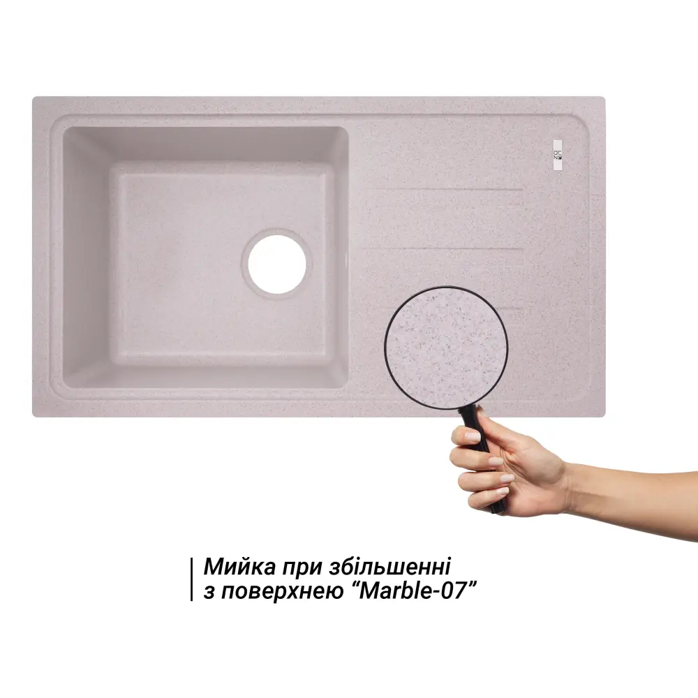 Кухонна мийка Lidz (MAR-07) 780x435/200 виготовлена ??з якісного штучного каменю, має матову поверхню. Відмінна якість і дизайн мийки дозволять задовольнити найвищі вимоги. Вона виконана з робочою чашею з отвором під злив-перелив і ребристим крилом для сушіння посуду або розморожування продуктів. Мийка монтується урізним способом в отвір в стільниці.