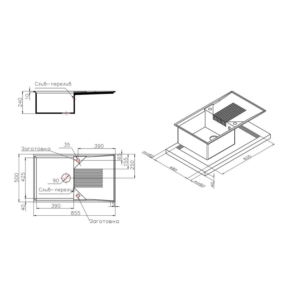 Кухонна мийка Lidz 860х500/240 COL-06 (LIDZWCOL06860500240) виготовлена ??з якісного штучного каменю, має матову поверхню і буде добре виглядати у поєднанні зі змішувачем того ж кольору. Виріб монтується урізним способом у підготовлений отвір в стільниці. Мийка виконана з робочою чашею та крилом, на ній є отвір злив-перелив та заготовка для отвору під змішувач. Відмінна якість та дизайн мийки задовольнять найвибагливі вимоги.