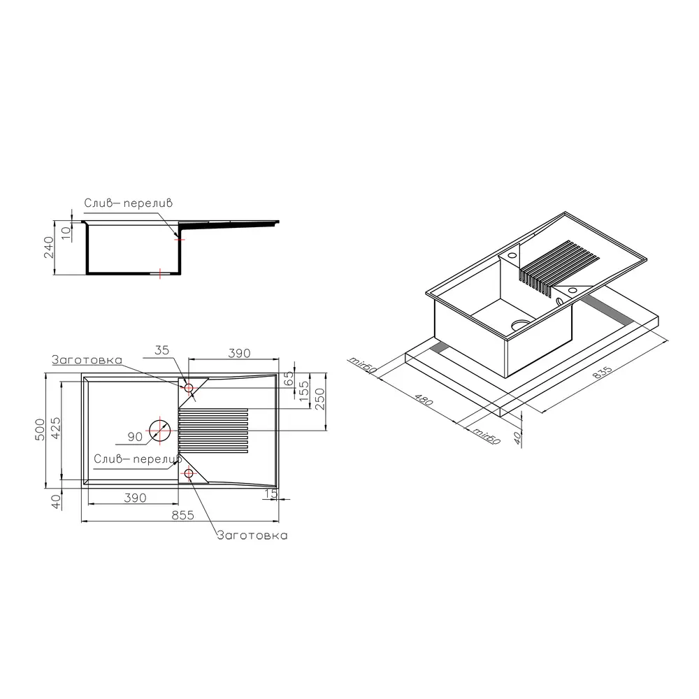 Кухонна мийка Lidz 860х500/240 GRF-13 (LIDZGRF13860500240) виготовлена ??з якісного штучного каменю, має матову поверхню і буде добре виглядати у поєднанні зі змішувачем того ж кольору. Виріб монтується урізним способом у підготовлений отвір в стільниці. Мийка виконана з робочою чашею та крилом, на ній є отвір злив-перелив та заготовка для отвору під змішувач. Відмінна якість та дизайн мийки задовольнять найвибагливі вимоги.