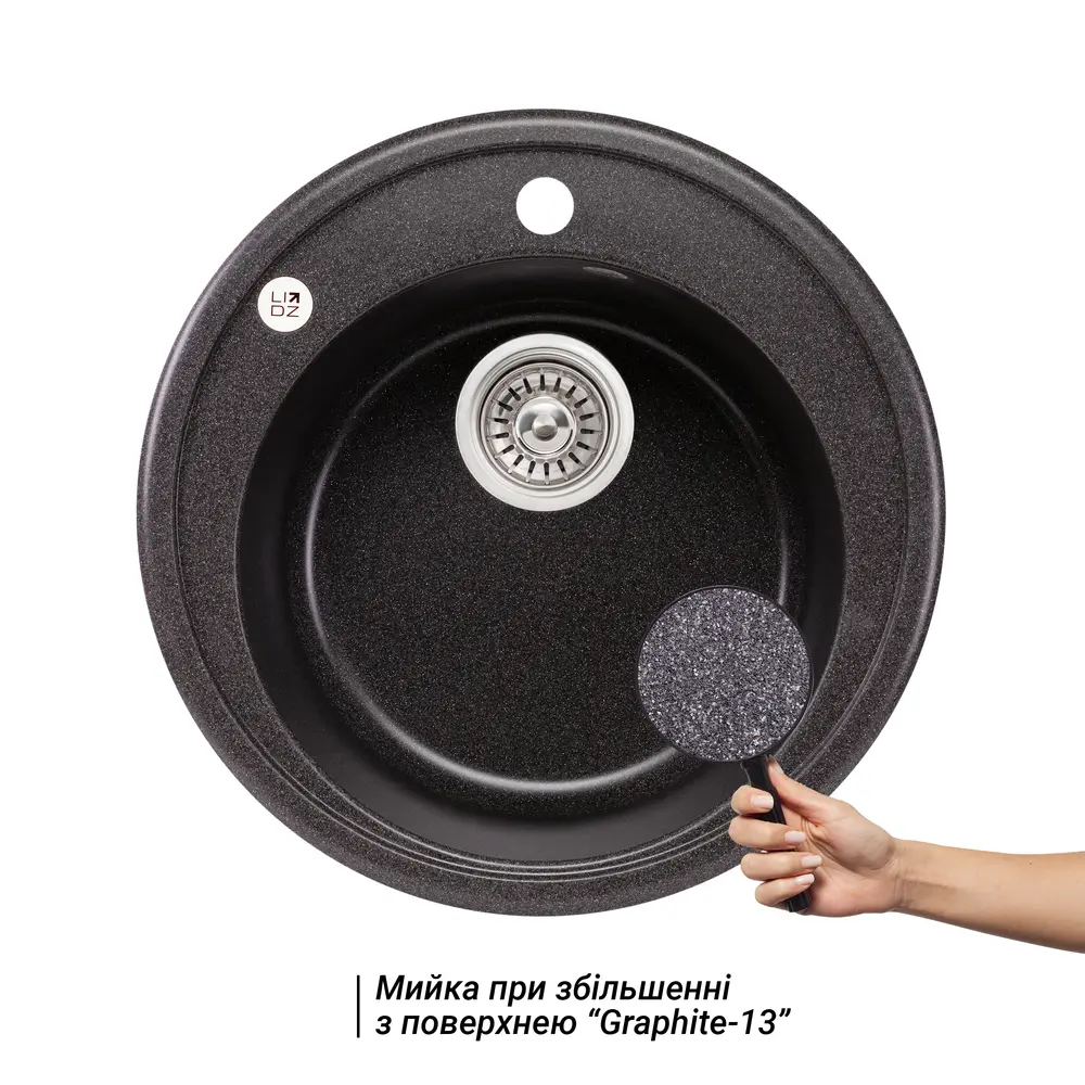Кухонна мийка Lidz D510/200 GRF-13 (LIDZGRF13D510200) виготовлена з якісного штучного каменю, має графітову матову поверхню, тому буде чудово виглядати зі змішувачем того ж кольору. Відмінна якість та дизайн мийки задовольнять найвибагливі вимоги. Вона виконана з робочою чашею з отвором злив-перелив та отвором під змішувач. Мийка монтується урізним способом в отвір в стільниці.