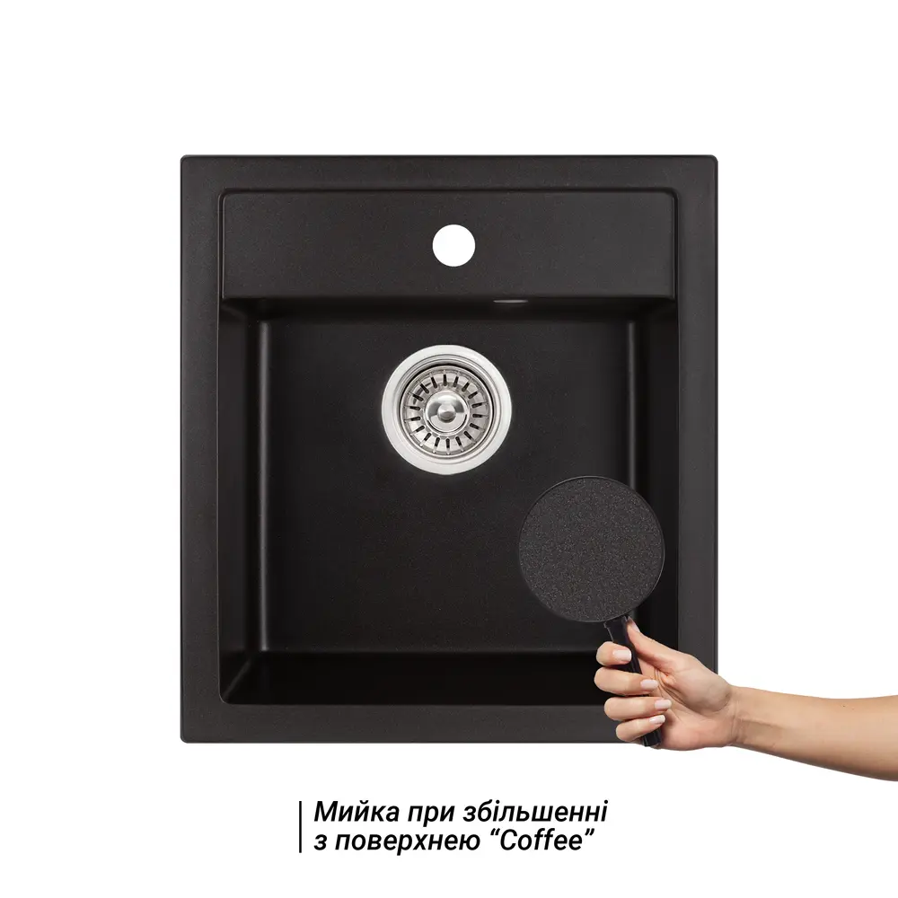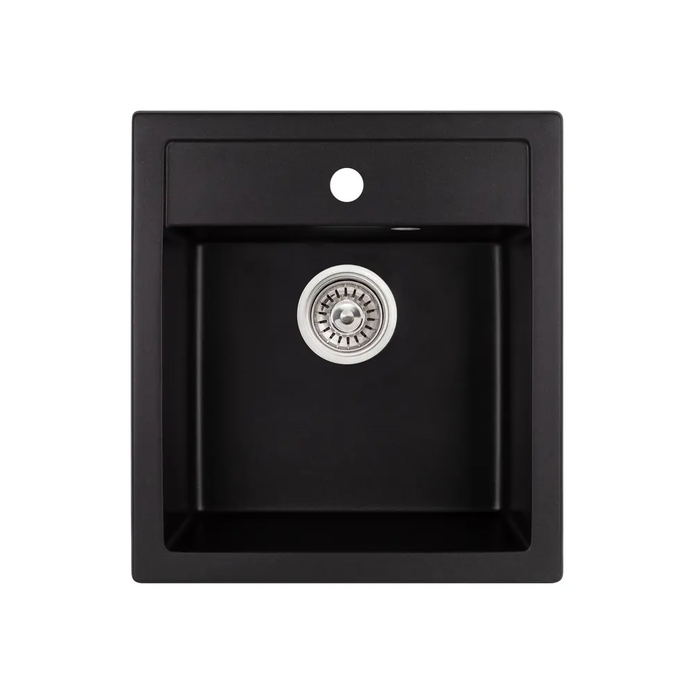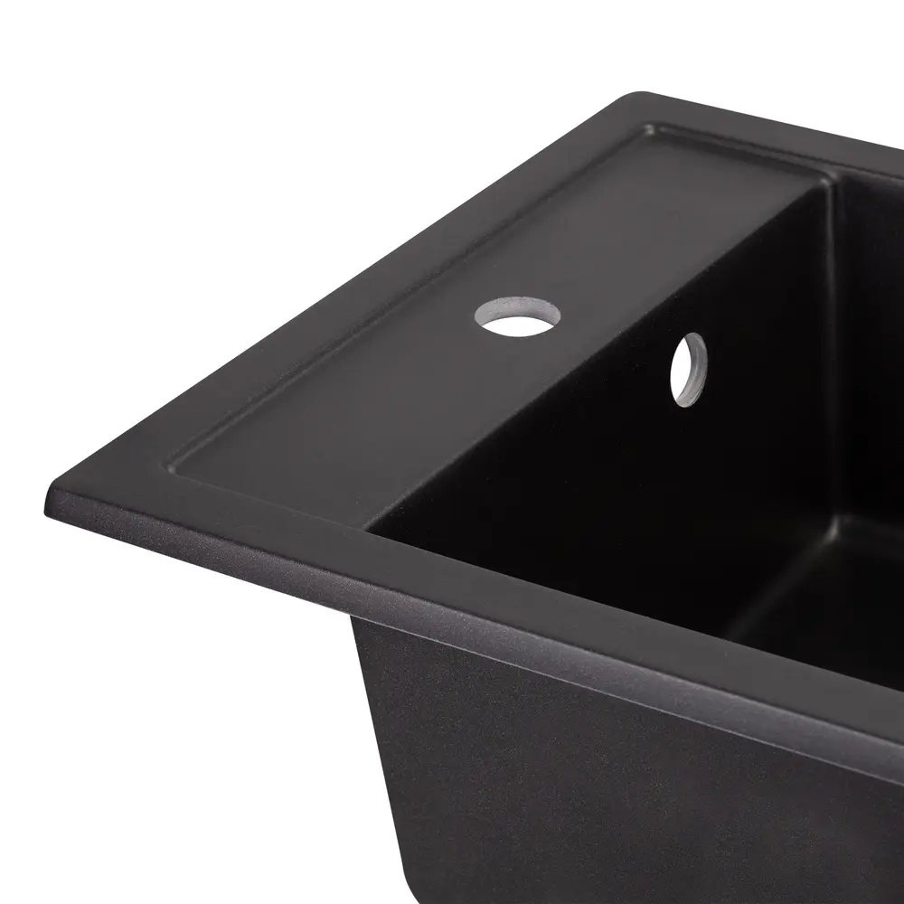 Кухонна мийка Qtap CS 5046 Black (QT5046BLA404) виготовлена ??з якісного штучного каменю з матовою поверхнею. Виріб з такого матеріалу досить стійкий до механічних пошкоджень, а поверхня здатна витримати температурні перепади. Така мийка досить просто очищується від забруднень. Вона має містку прямокутну чашу, отвір під змішувач і отвір під перелив. Виріб монтується урізним способом в отвір в стільниці.