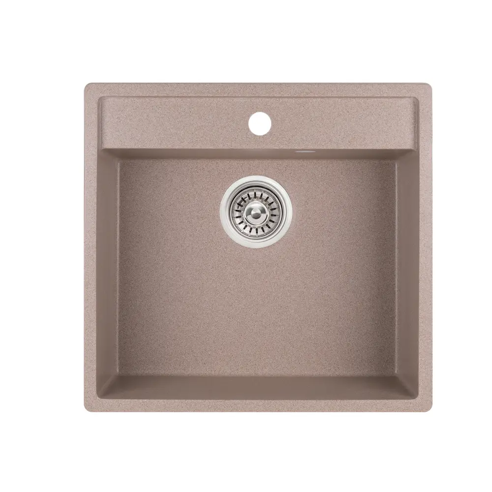 Кухонна мийка Qtap CS 5250 Beige (QT5250BEI551) виконана з якісного штучного каменю, має матову поверхню, що надає їй привабливий зовнішній вигляд. Виріб стійкий до механічних пошкоджень, а поверхня може витримати температурні перепади. Така мийка очищується від забруднень без особливих зусиль. Вона має містку прямокутну чашу, отвір під змішувач і отвір під перелив. Виріб монтується урізним способом в отвір в стільниці.