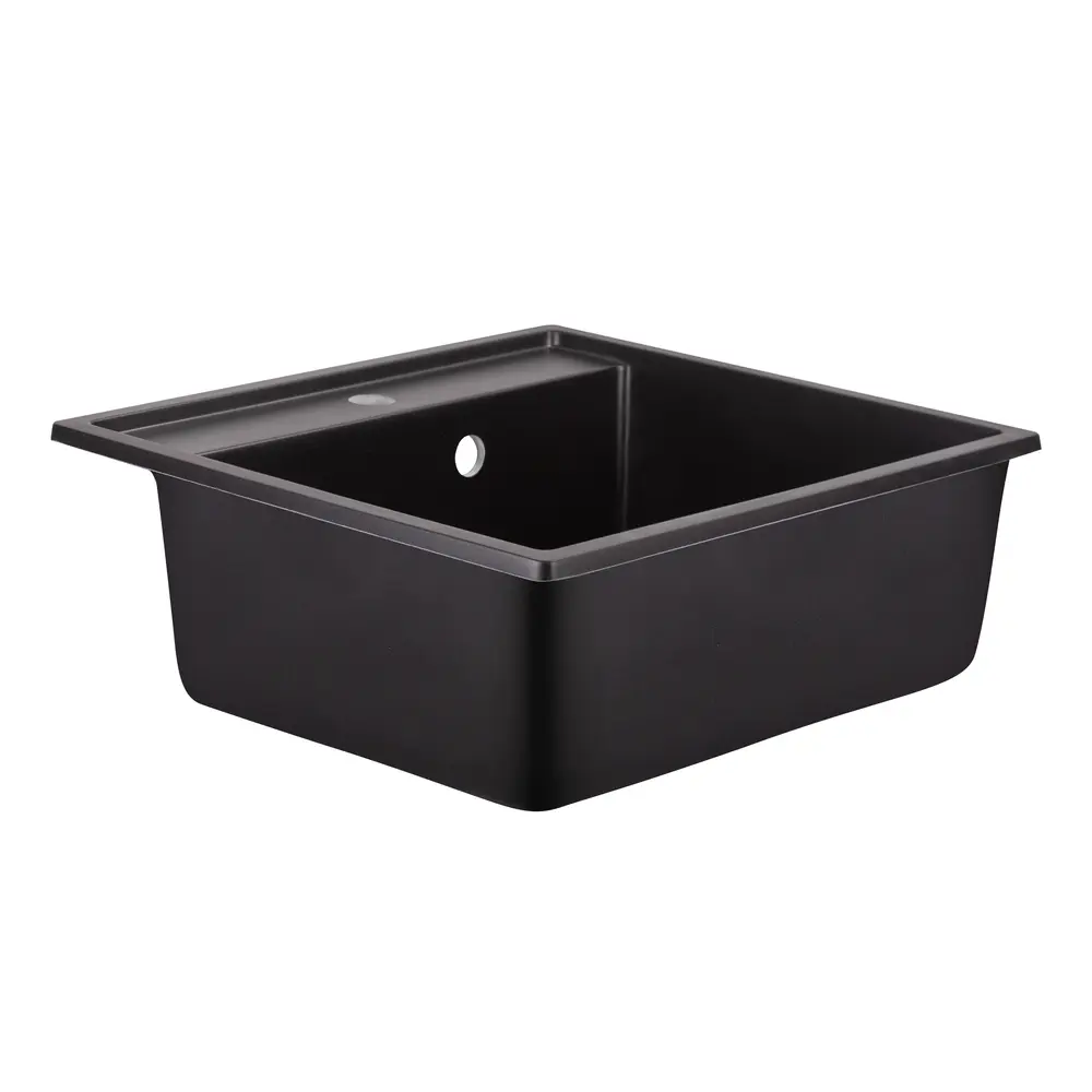 Кухонна мийка Qtap CS 5250 Black (QT5250BLA404) виконана з якісного штучного каменю, має матову поверхню, що надає їй привабливий зовнішній вигляд. Виріб стійкий до механічних пошкоджень, а поверхня може витримати температурні перепади. Така мийка очищується від забруднень без особливих зусиль. Вона має містку прямокутну чашу, отвір під змішувач і отвір під перелив. Виріб монтується урізним способом в отвір в стільниці.