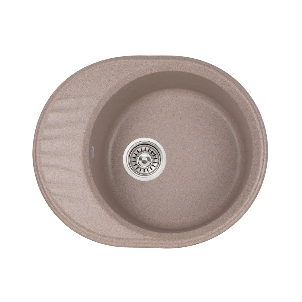 Кухонна мийка Qtap CS 6151 Beige (QT6151BEI551) виготовлена ??з якісного штучного каменю з матовою поверхнею. Виріб з такого матеріалу досить стійкий до механічних пошкоджень, а поверхня здатна витримати температурні перепади. Така мийка досить просто очищується від забруднень. Вона має містку круглу чашу, зручне крило для сушки посуду, отвір під перелив. Виріб монтується урізним способом в отвір в стільниці.