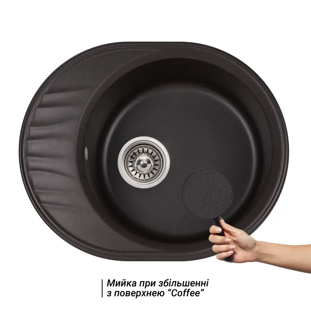 Кухонна мийка Qtap CS 6151 Coffee (QT6151COF551) виготовлена ??з якісного штучного каменю з матовою поверхнею. Виріб з такого матеріалу досить стійкий до механічних пошкоджень, а поверхня здатна витримати температурні перепади. Така мийка досить просто очищується від забруднень. Вона має містку круглу чашу, зручне крило для сушки посуду, отвір під перелив. Виріб монтується урізним способом в отвір в стільниці.