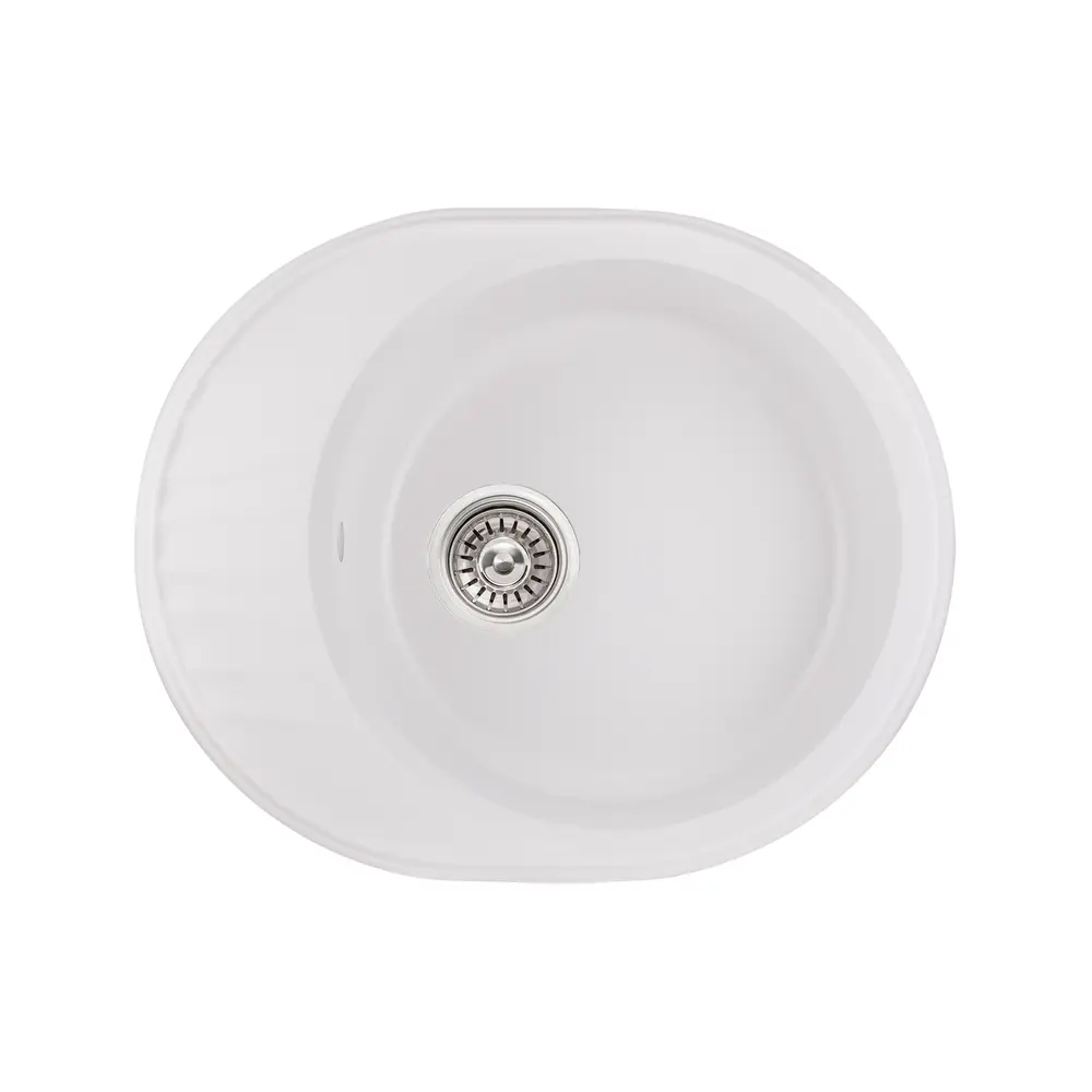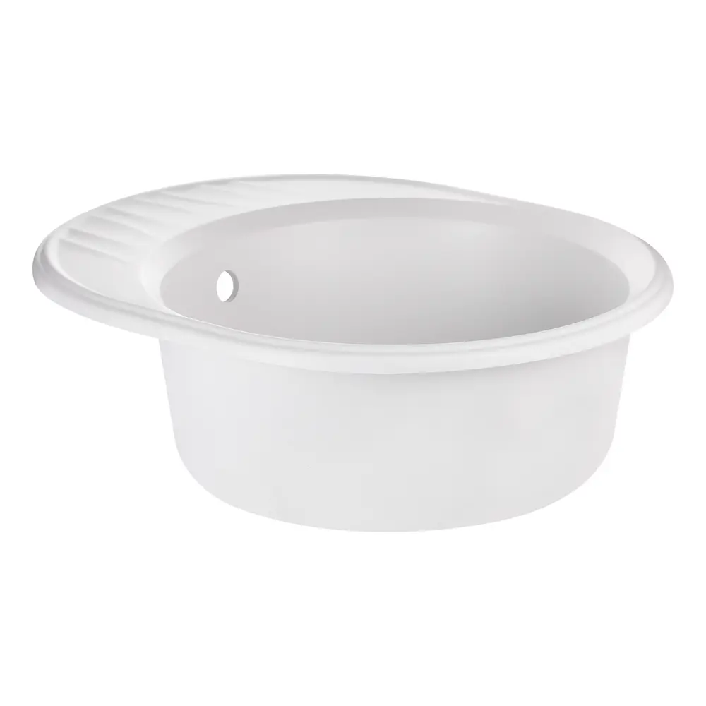 Кухонна мийка Qtap CS 6151 White (QT6151WHI650) виготовлена ??з якісного штучного каменю з матовою поверхнею. Виріб з такого матеріалу досить стійкий до механічних пошкоджень, а поверхня здатна витримати температурні перепади. Така мийка досить просто очищується від забруднень. Вона має містку круглу чашу, зручне крило для сушки посуду, отвір під перелив. Виріб монтується урізним способом в отвір в стільниці.