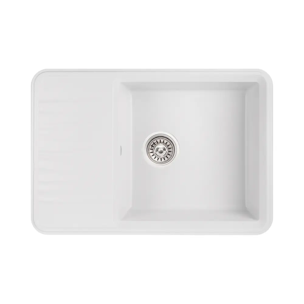 Кухонна мийка Qtap CS 7440 White (QT7440WHI650) виготовлена ??з якісного штучного каменю з матовою поверхнею. Виріб з такого матеріалу досить стійкий до механічних пошкоджень, а поверхня витримує температурні перепади. Така мийка досить просто очищується від забруднень. Вона має містку прямокутну чашу, оригінальне крило для сушки посуду і отвір під перелив. Виріб монтується урізним способом в отвір в стільниці.
