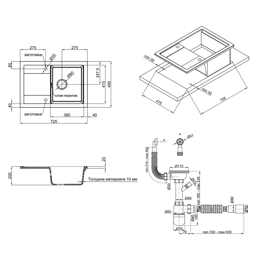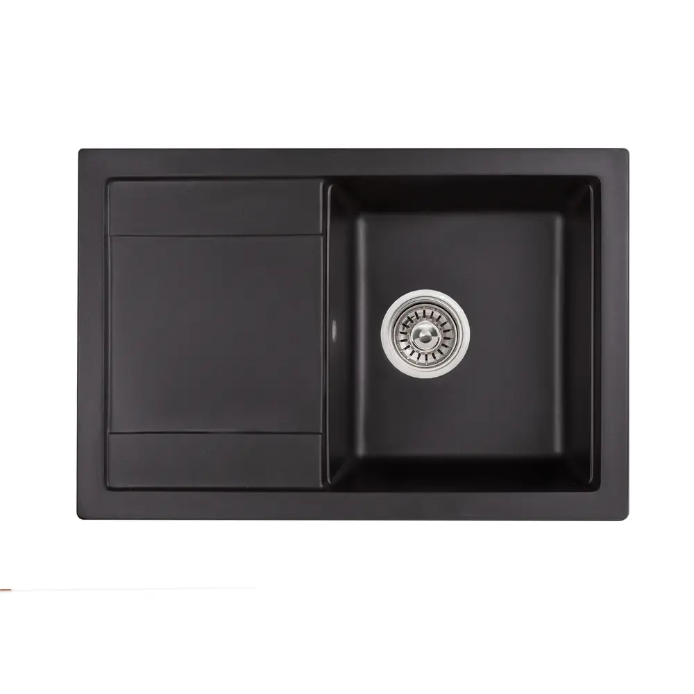 Кухонна мийка Qtap CS 7449 Black (QT7449BLA404) виготовлена ??з якісного штучного каменю з матовою поверхнею. Виріб з такого матеріалу досить стійкий до механічних пошкоджень, а поверхня здатна витримати температурні перепади. Така мийка досить просто очищується від забруднень. Вона має містку прямокутну чашу, універсальне крило для сушки посуду і отвір під перелив. Виріб монтується урізним способом в отвір в стільниці.