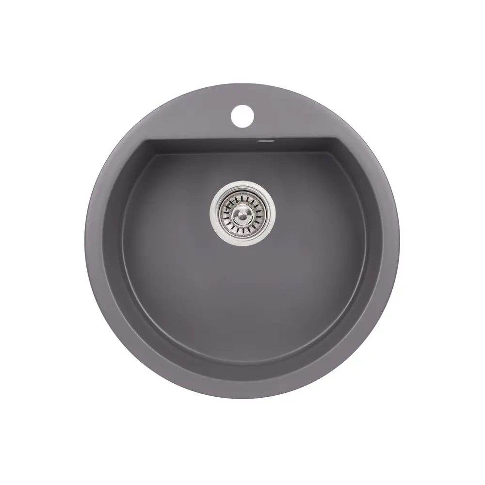 Кухонна мийка Qtap CS D510 Grey (QTD510GRE471) виконана з якісного штучного каменю, має матову поверхню, що надає їй привабливий зовнішній вигляд. Виріб стійкий до механічних пошкоджень, а поверхня може витримати температурні перепади. Така мийка очищується від забруднень без особливих зусиль. Вона має містку круглу чашу, отвір під змішувач і отвір під перелив. Виріб монтується урізним способом в отвір в стільниці.