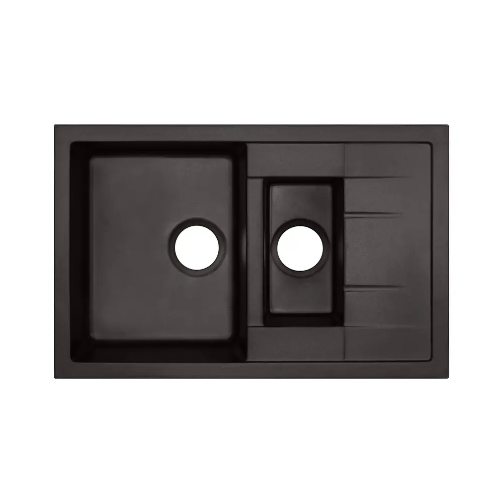 Кухонна мийка Qtap CS 7648 COF (QT7648COF551) виконана з якісного штучного каменю, має матову поверхню, що надає їй привабливий зовнішній вигляд. Виріб стійкий до механічних пошкоджень, а поверхня здатна витримати температурні перепади. Така мийка очищується від забруднень без особливих зусиль. Вона має містку основну і невелику додаткову чашу, а також отвір під перелив. Виріб монтується урізним способом в отвір в стільниці.