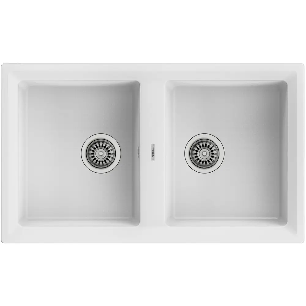Прямокутна мийка для кухні врізна Teka STONE 90 B-TG 2B (115260005) білий з теграніта, з двома чашами без крила.