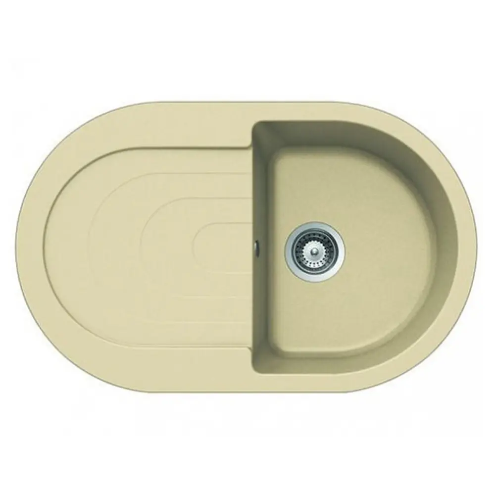 Овальна мийка для кухні врізна Teka PERLA 45 B-TG (40144585) пісочний з теграніта, з однією чашею і крилом.