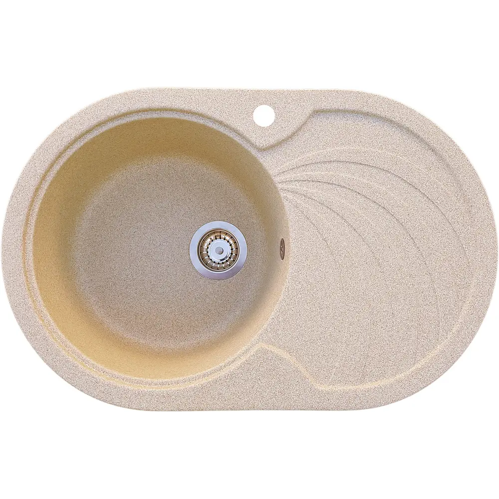Велика гранітна мийка овальної форми, бежевого кольору Valetti Europe модель №33, розміром 780х500х205мм з місткою чашею, переливом і крилом для сушіння посуду. Вибір сторони розміщення змішувача. Гарантія 5 років.Мийка зручно вміститься в найпоширеніші кухонні шафи розміром 800*600 мм. Виготовлена на спільному Українсько-Італійському виробництві в місті Запоріжжі, звідки і проводиться пряма поставка, без переплат за зберігання і зайву транспортування.Міцна і надійна. Має товщину стінок 15 мм. Поглинає звуки від падаючої води і посуду.Не фарбується, не боїться температур і їх різких перепадів. Стійка до подряпин, падіння предметів та інших впливів.Кран може встановлюватися з будь-якої сторони - за бажанням - для чого в мийці заводом буде безкоштовно зроблено отвір. Так само можна залишити і без нього.Є перелив відводить надлишок води при повному наборі чаші.Доставляється платно Новою поштою. Для Запоріжжя діє безкоштовна адресна доставка.