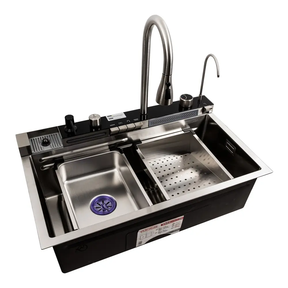 Кухонная мойка 75*45М сатин Platinum Handmade "Водопад"