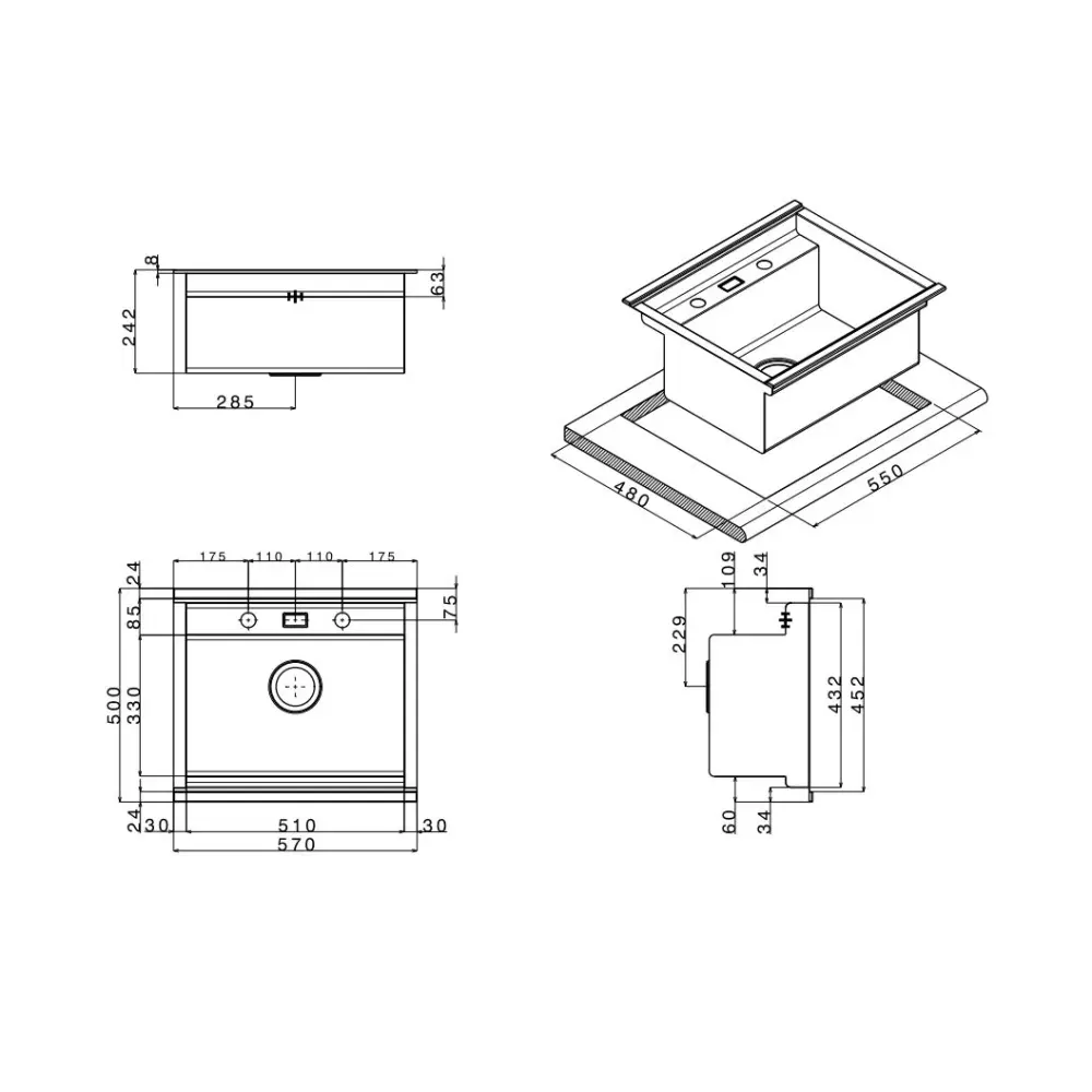 Мийка, Скляні кришки, Змішувач, Сифон, Зливник, Перелив, Донний клапан, Кріпильні деталі