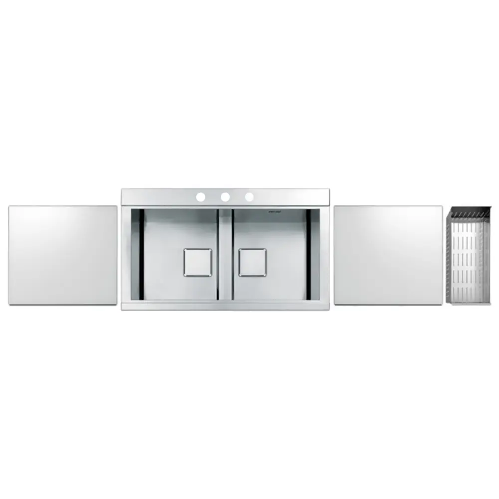 Кухонная мойка Apell Sinphonia PD862IKITW изготовлена из нержавеющей стали высокого качества. Сталь состоит из 18% хрома и 10% никеля, что делает ее очень прочной. Согласно этому, мойка прослужит долгие годы сохранит функциональность и внешний вид. На поверхности отсутствуют поры, поэтому она не загрязняется, быстро моется, устойчива к царапинам. Мойка выполнена с двумя рабочими чашами, двумя стеклянными крышками и коландером для промывки и сушки продуктов или столовых приборов.