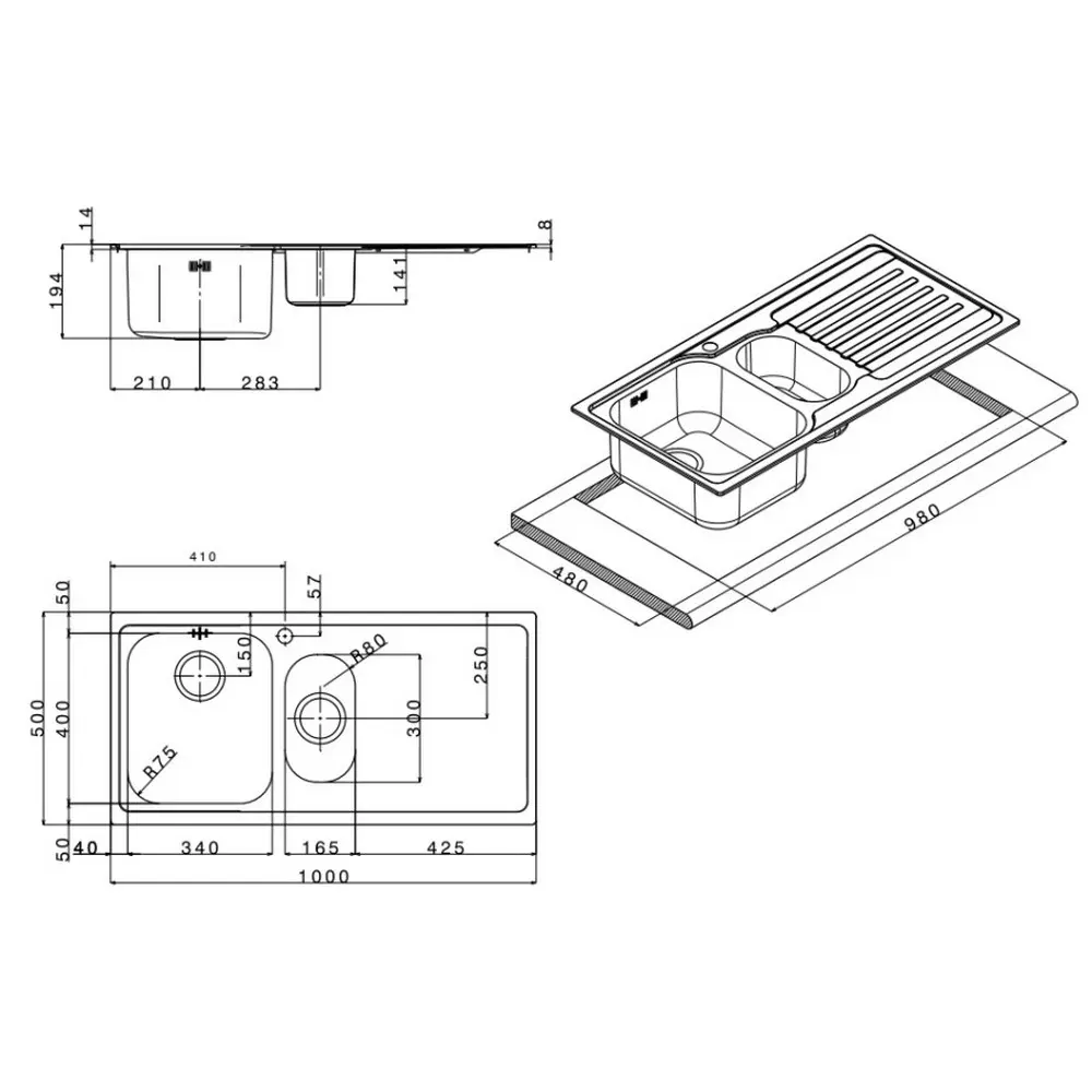 Кухонна мийка Apell Venezia VE1002IRBC виготовлена з нержавіючої сталі високої якості. Сталь складається з 18% хрому та 10% нікелю, що робить її дуже міцною. Згідно з цим, мийка прослужить довгі роки, збереже функціональність і зовнішній вигляд. На поверхні відсутні пори, тому вона не забруднюється, швидко миється, стійка до подряпин. Мийка виконана з робочою чашею, додатковою для розморожування продуктів і ребристим крилом для сушіння посуду. Вона монтується урізним способом в стільницю.