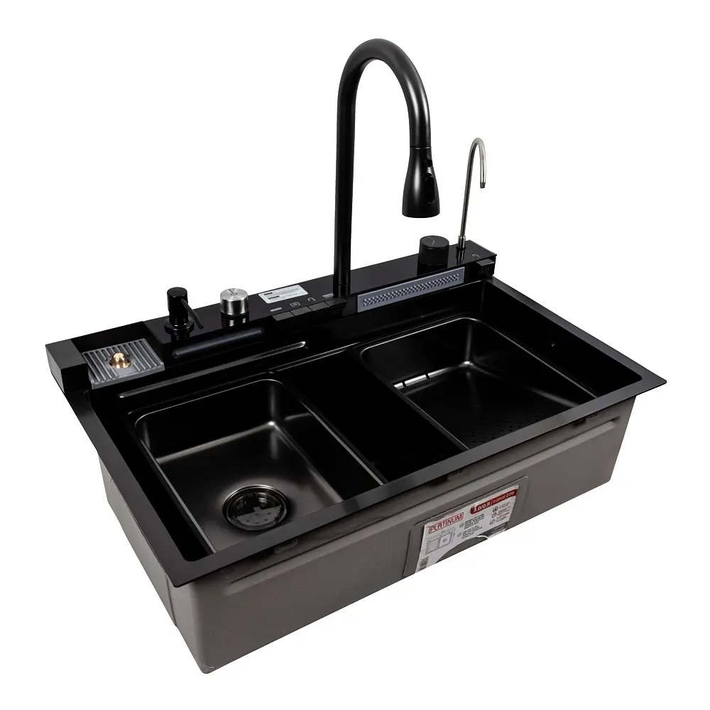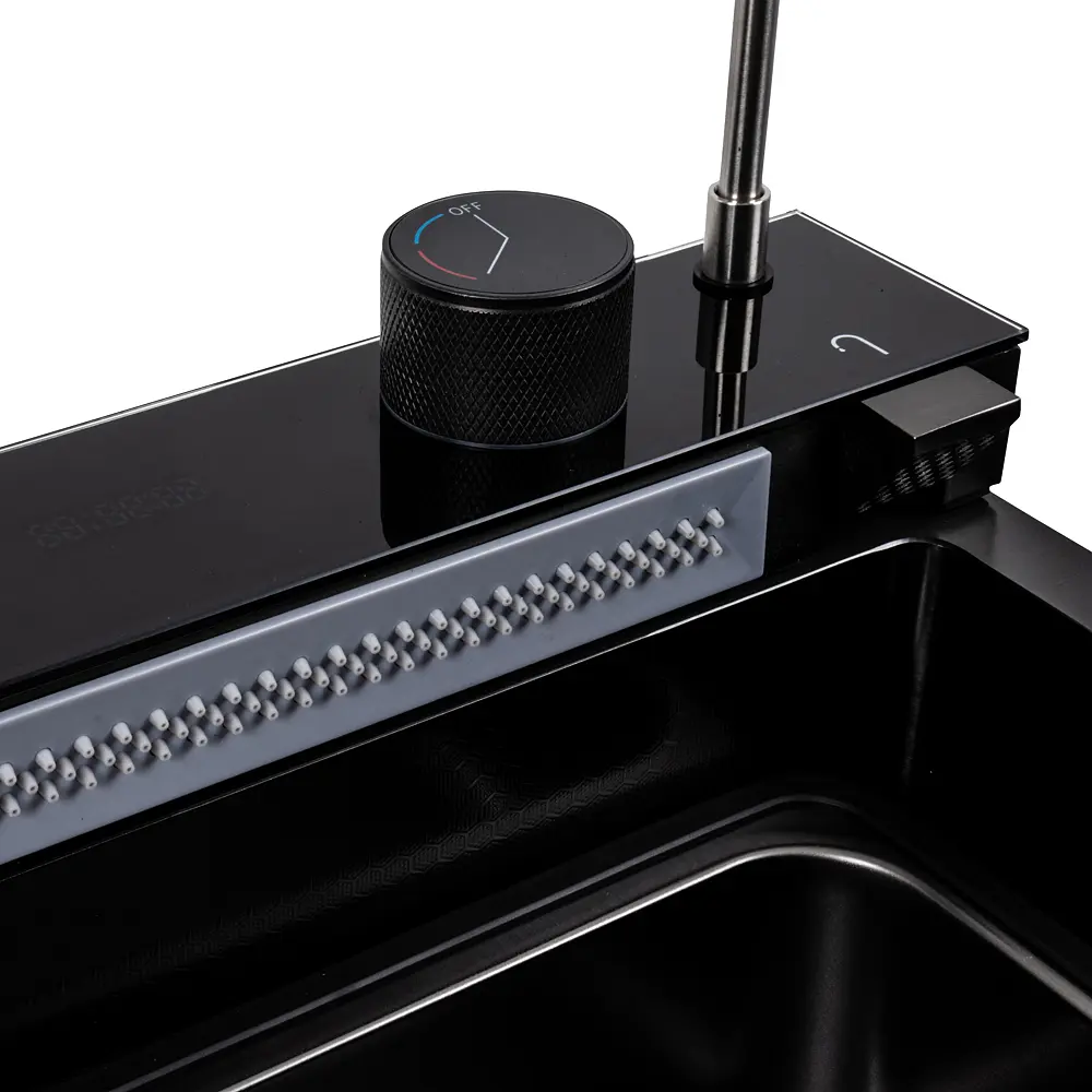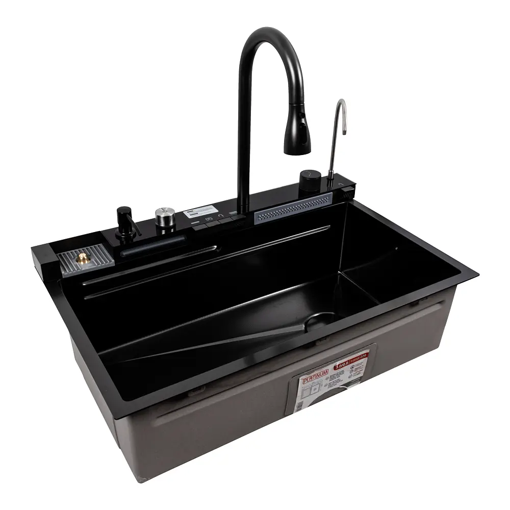 Кухонная мойка CM 75*46C PVD черная Platinum Handmade "Водопад" Декор