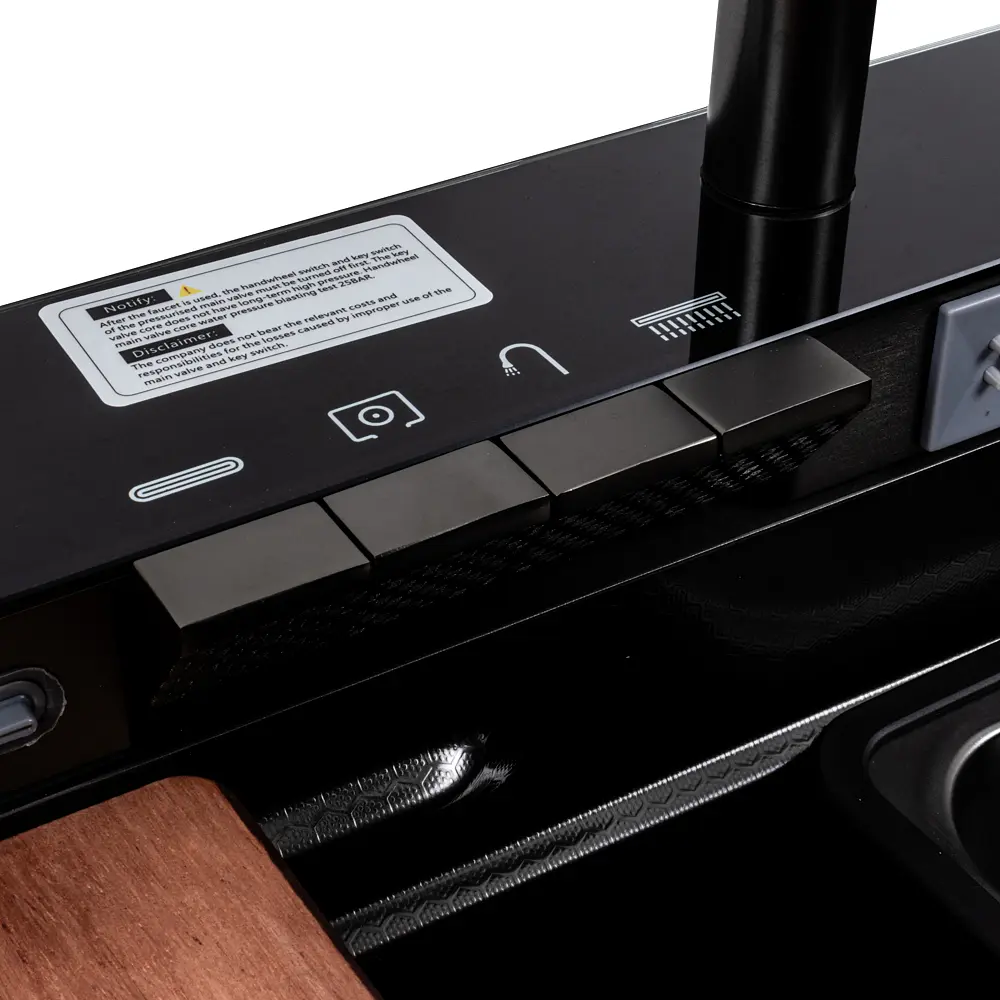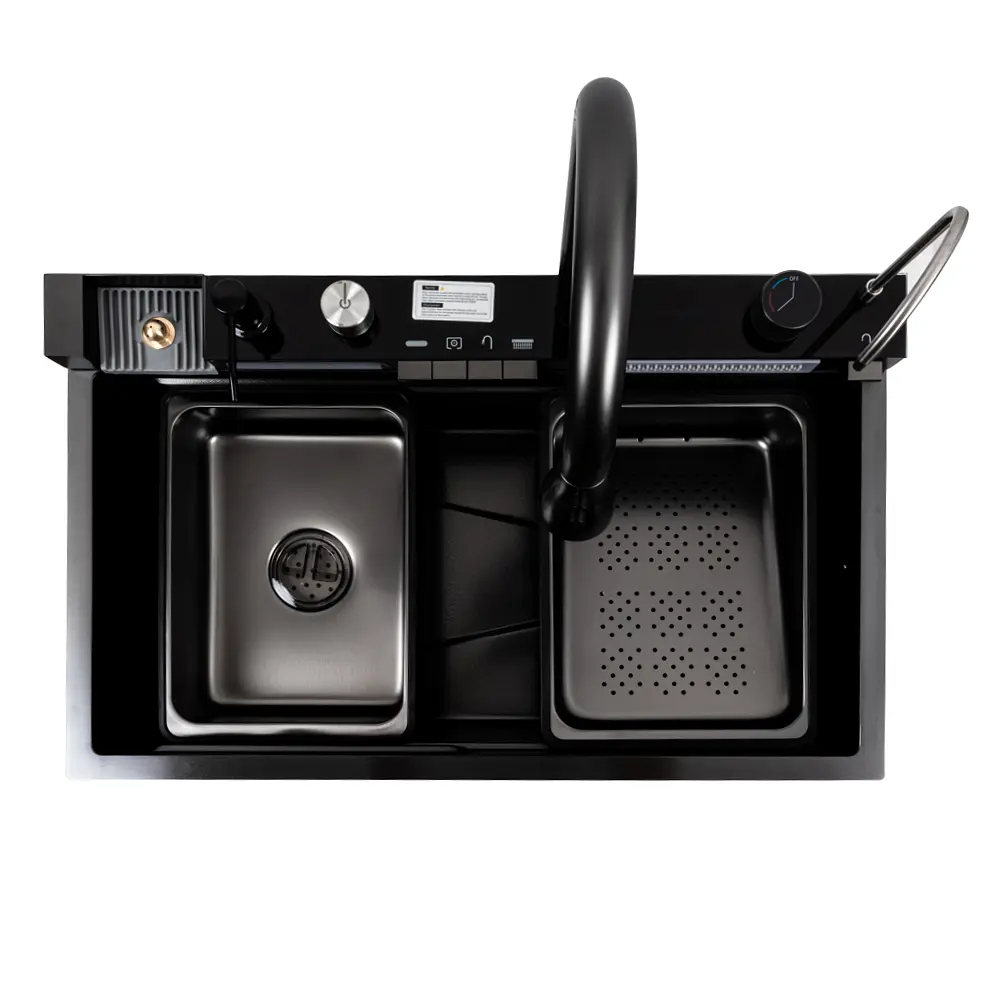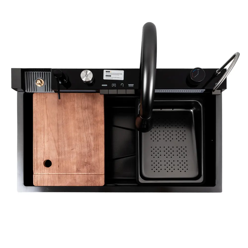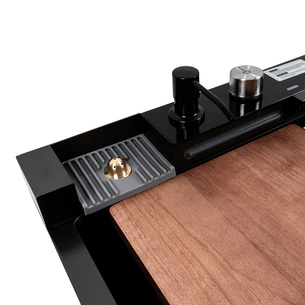 Кухонная мойка CM 75*46C PVD черная Platinum Handmade "Водопад" Декор