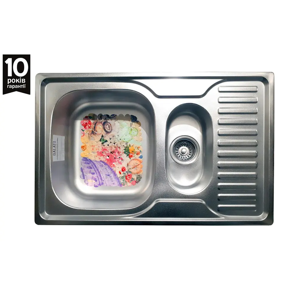 Стальная раковина кухоннаnbsp; Galaţi Petrika Textură 78 * 50 с доп. чашей. Гарантия 10 лет. P>