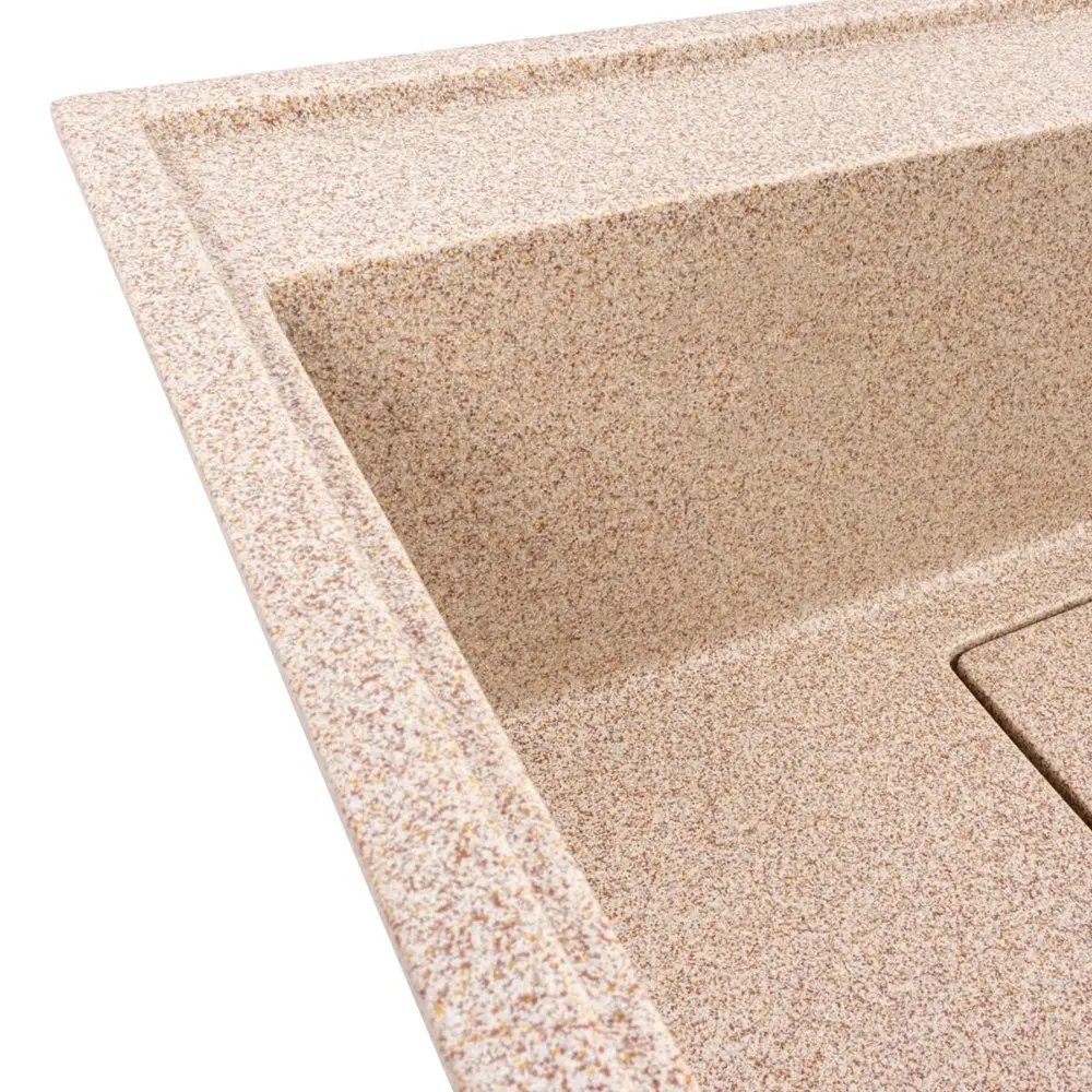 Модель 6050 SHERLIT имеет элегантный и сдержанный дизайн с матовой текстурой, что подчеркивает ее современный стиль. Теплый цвет карамель легко сочетается с различными стилями кухонных интерьеров, от классических до современных, создавая уютную и приятную атмосферу. Высококачественный гранит обеспечивает исключительную устойчивость мойки к царапинам, ударам, высоким температурам (до +280°C) и агрессивным химическим веществам, что гарантирует ее долговечность и гигиеничность.