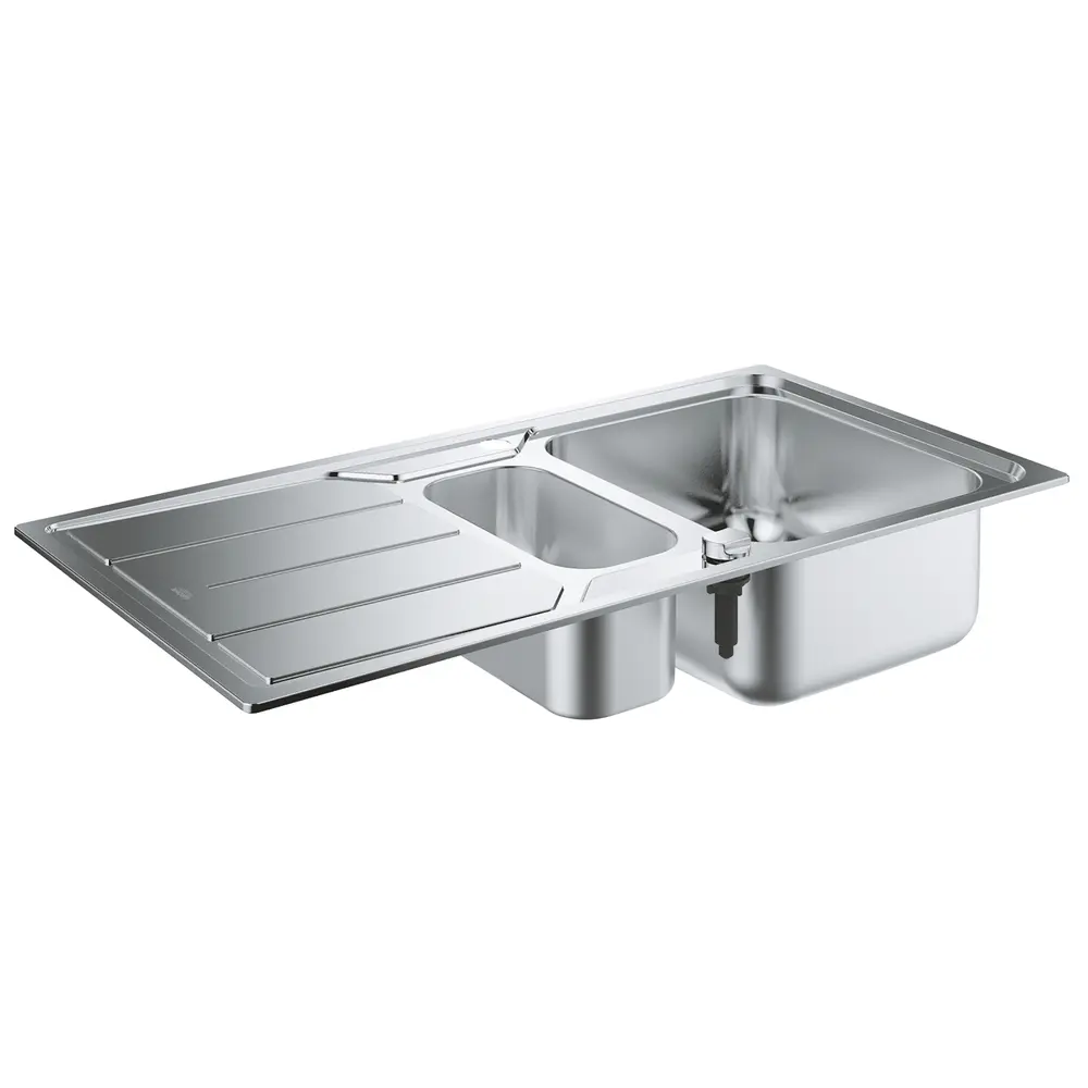 Кухонна мийка Grohe Sink 31572SD0 виготовлена з нержавіючої сталі, що гарантує її надійність і привабливість поверхні. Завдяки системі GROHE QuickFix установлення мийки не візьме багато часу та не потребує додаткового обладнання. Мийка виконана з робочою чашею з отвором злив-перелив, додатковою для розморожування продуктів, отвором під змішувач і крилом для сушіння посуду. Ізоляція GROHE Whisper на нижній частині мийки зменшує шум, є автоматичний сміттєзбиральний фільтр.