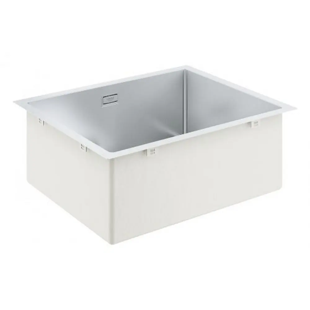 Кухонна мийка Grohe Sink 31726SD0 має шикарний кубічний дизайн, виготовлена з нержавіючої сталі з хромованою зносостійкою поверхнею, нанесеною за технологією GROHE StarLight®. Завдяки системі GROHE QuickFix установка мийки в стільницю не візьме багато часу та не потребує додаткового обладнання. Мийка виконана у вигляді глибокої чаші з отвором злив-перелив. Ізоляція GROHE Whisper на нижній частині мийки зменшує шум.