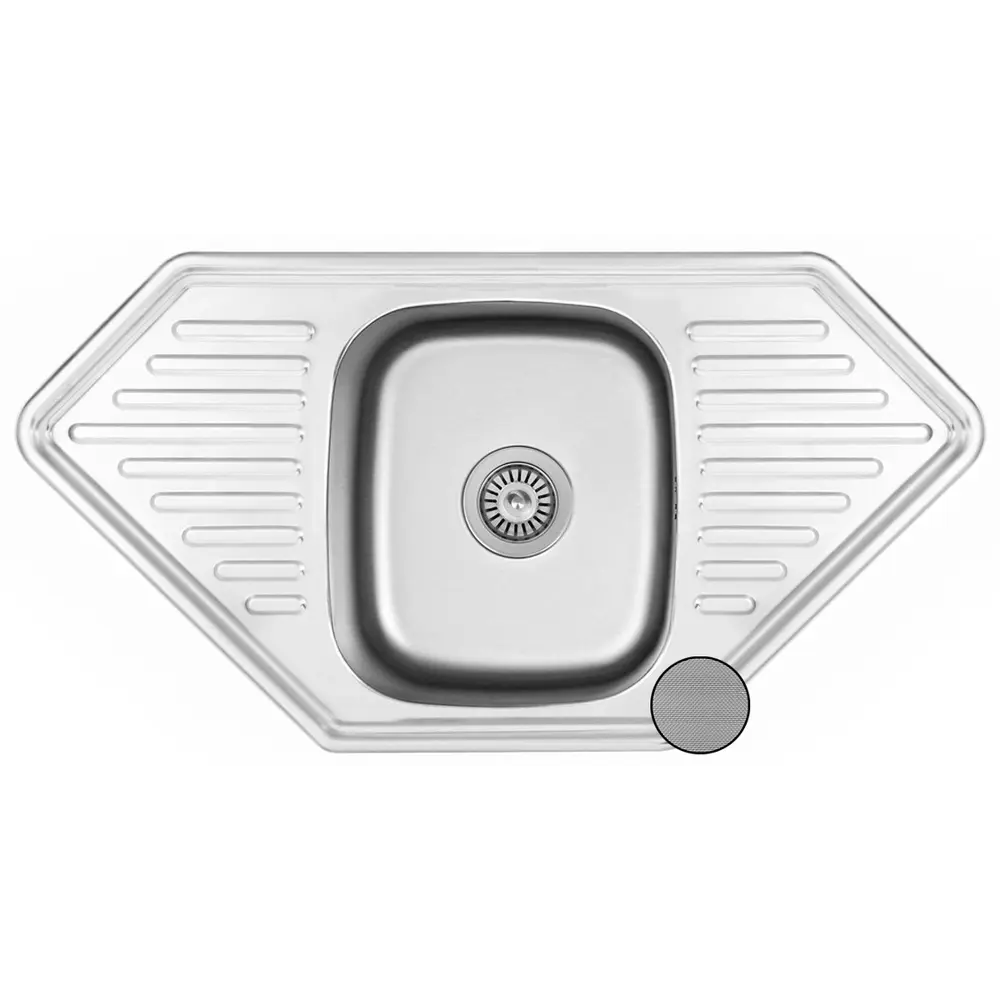 Мойка Galaţi Meduză Textură угловая с одной чашей и двумя полочками для сушки посуды общим размером 95 * 50 сантиметров. p>