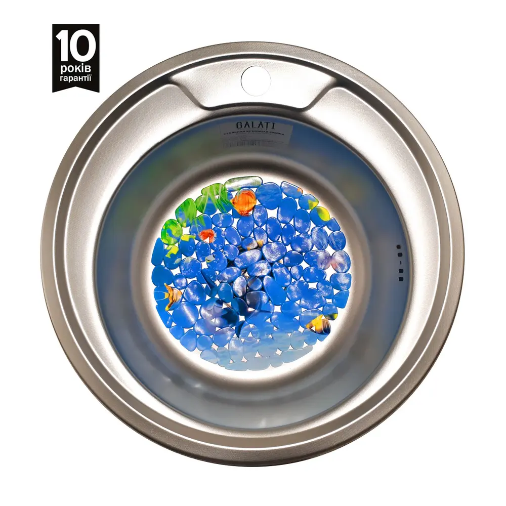 Врезная круглая мойка (Eko) Sorin Textură Румынской торговой марки Galaţi изготовлена в Турции из качественного нержавеющего металла и имеет очень хорошую поверхность - декор - нанесен мелкий орнамент, который не только визуально украшает ее, но и несет в себе защитную функцию, уменьшая область соприкосновения с другими предметами, соответственно снижая шанс и заметность любых возможных повреждений. p>