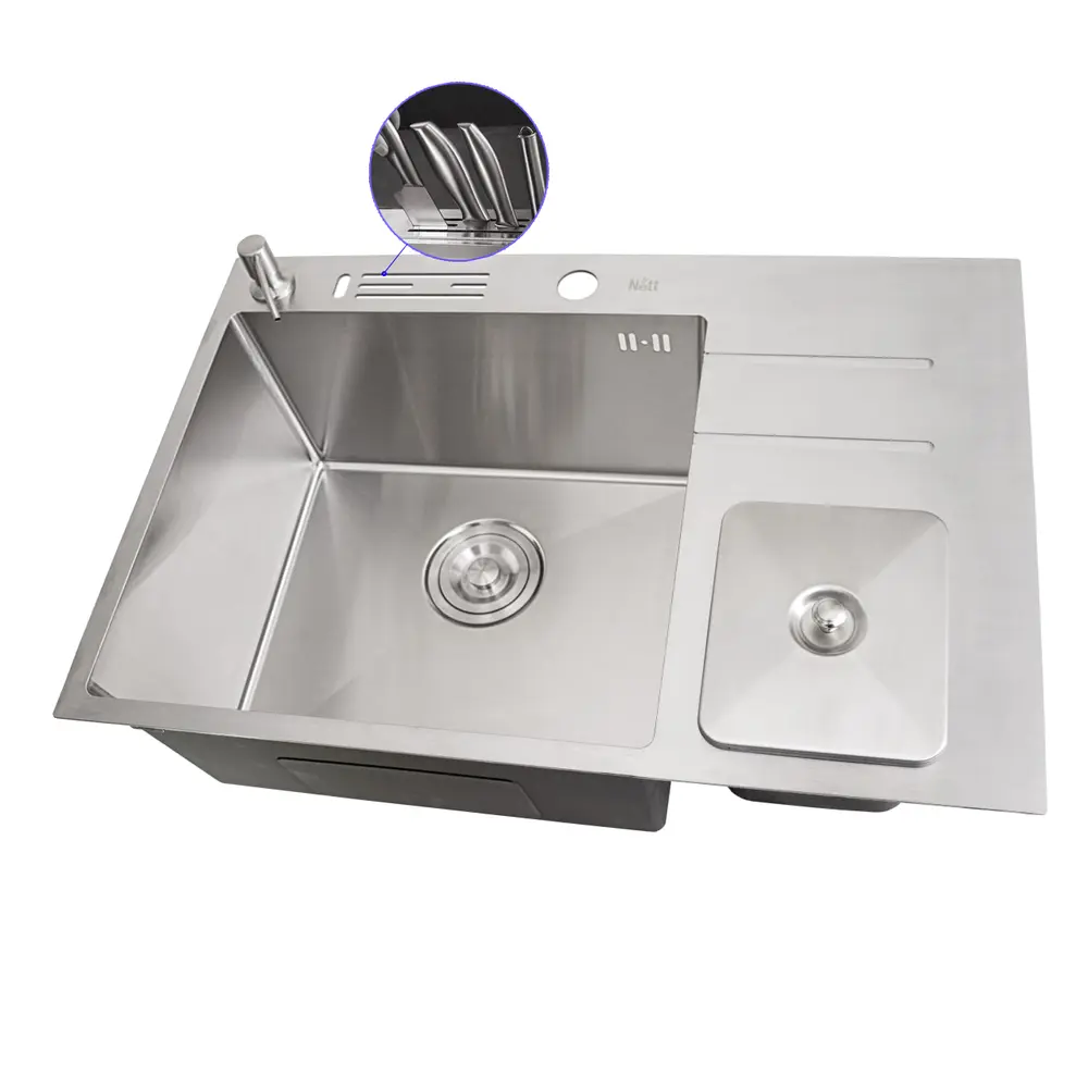 Ексклюзивна пропозиція в Україні: Відкрийте мийку нового покоління з інтегрованим отвором для ножів. Забудьте про необхідність тримати ножі на стільниці та заощаджуйте простір на кухні, уникаючи зайвого скупчення бруду.