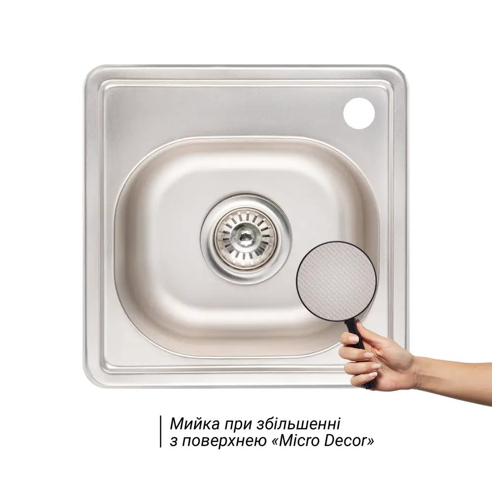 Кухонна мийка Lidz 3838 0,6 мм Micro Decor (LIDZ3838MDEC06) виготовлена з нержавіючої сталі харчової марки, тому виріб прослужить довгі роки. Також варто відзначити винятковий дизайн, який прикрасить будь-яку кухню. Відмінна якість та дизайн мийки задовольнять найвибагливі побажання й створять затишок у вашому домі! Мийка з отвором під змішувач, монтується урізним способом в отвір в стільниці. Поверхня - ребриста, не забруднюється.