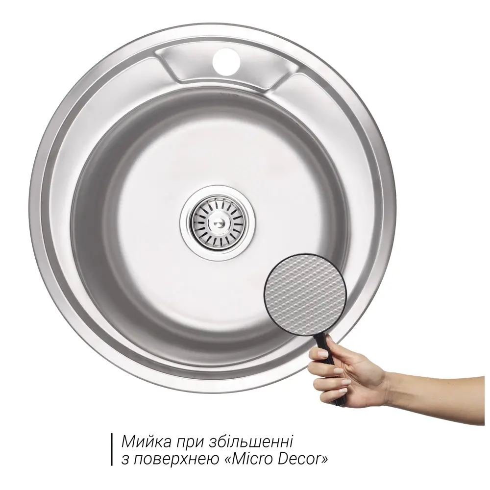 Кухонная мойка Lidz 490-A 0,6 мм Micro Decor (LIDZ490AMDEC06) изготовлена из нержавеющей стали пищевой марки, поэтому изделие прослужит долгие годы. Также стоит отметить исключительный дизайн, который украсит любую кухню. Отличное качество и дизайн мойки удовлетворят найвибагливи пожелания! Мойка выполнена из круглой чашей и отверстием под смеситель, монтируется врезным способом в отверстие в столешнице. Поверхность - ребристая, не загрязняется, быстро моется.