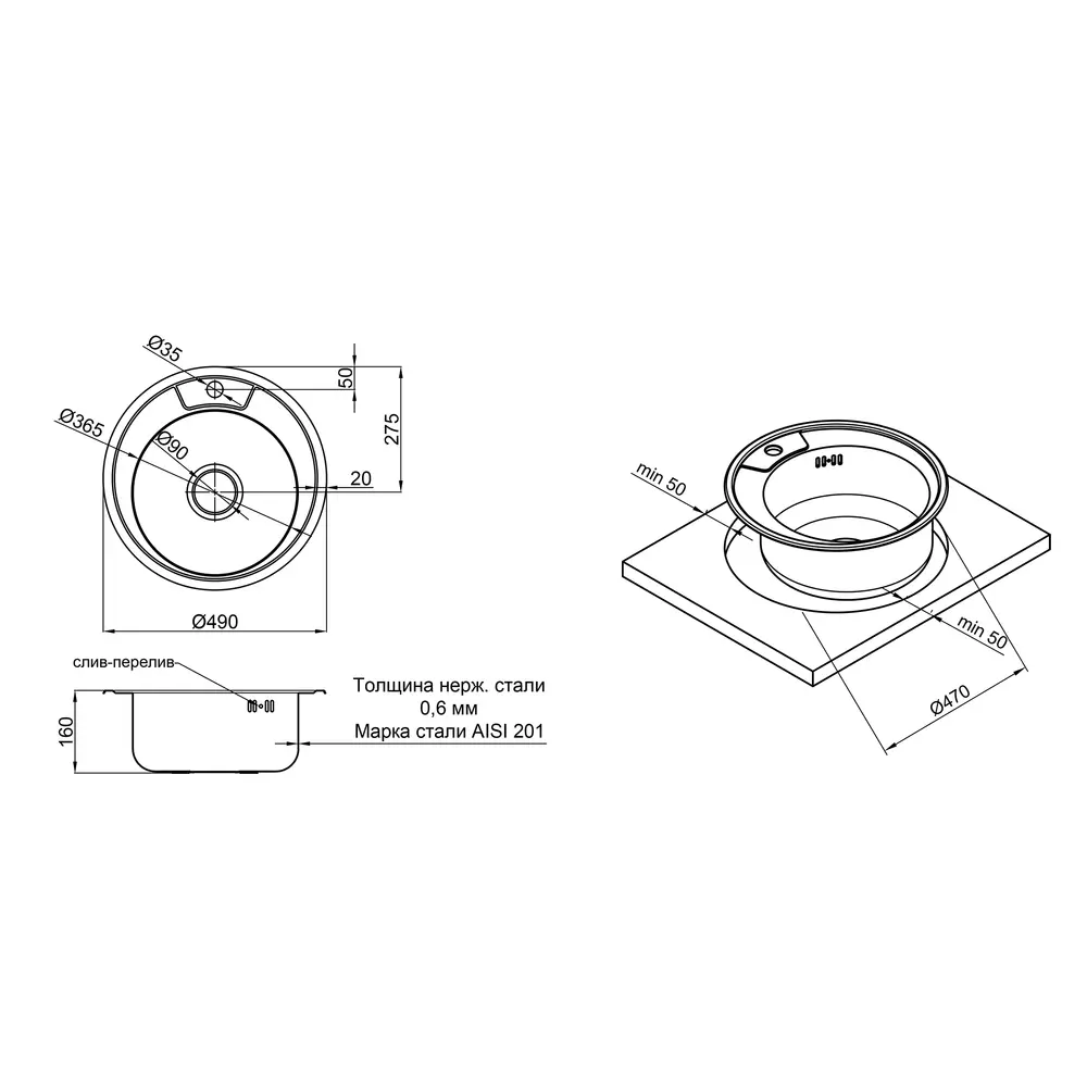 Кухонная мойка Lidz 490-A 0,6 мм Satin изготовлена из высококачественной нержавеющей стали пищевой марки, поэтому изделие прослужит долгие годы. Также стоит отметить исключительный дизайн который украсит любую кухню. Отличное качество и дизайн мойки позволят удовлетворить самые высокие требования и создать уют в вашем доме! Мойка выполнена из круглой чашей и отверстием под смеситель, монтируется врезным способом в отверстие в столешнице. Поверхность - матовая, гладкая, быстро моется.