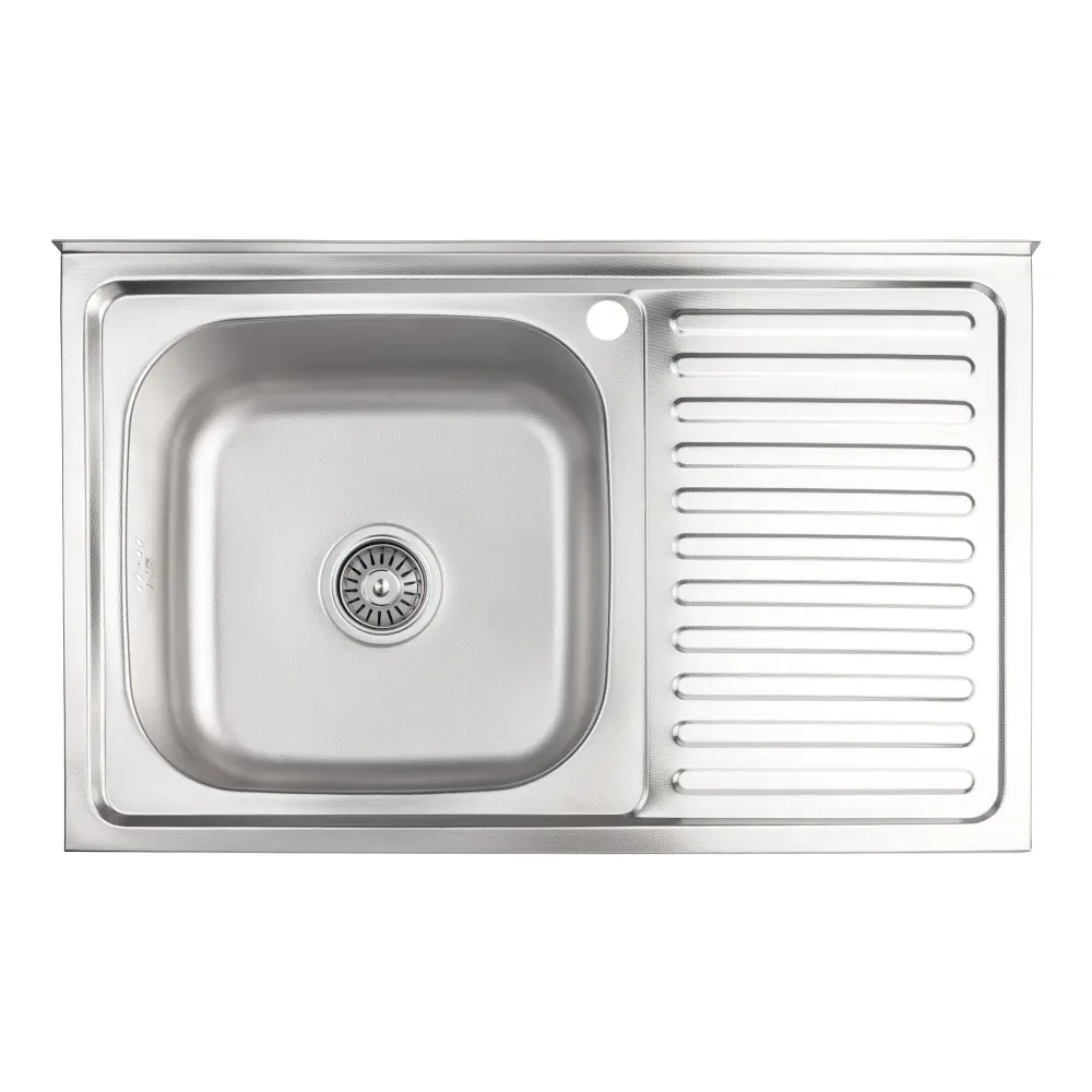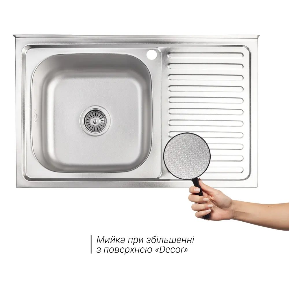 Кухонна мийка Lidz 5080-L 0,8 мм Decor (LIDZ5080LDEC06) виготовлена з нержавіючої сталі харчової марки, тому виріб прослужить довгі роки. Також варто відзначити винятковий дизайн, який прикрасить будь-яку кухню. Відмінна якість та дизайн мийки задовольнять найвибагливі побажання! Мийка виконана з робочою чашею, крилом для сушіння посуду і розморожування продуктів, отвором для змішувача. Монтується накладним способом в отвір в стільниці.