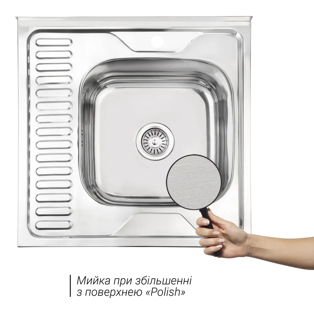 Кухонная мойка Lidz 6060-R 0,6 мм Polish (LIDZ6060RPOL06) изготовлена из нержавеющей стали пищевой марки, поэтому изделие прослужит долгие годы. Также стоит отметить исключительный дизайн, который украсит любую кухню. Отличное качество и дизайн мойки удовлетворят найвибагливи пожелания! Мойка выполнена из рабочей чашей, ребристым крылом для сушки посуды и разморозки продуктов, отверстием для смесителя. Монтируется накладным способом в отверстие в столешнице.