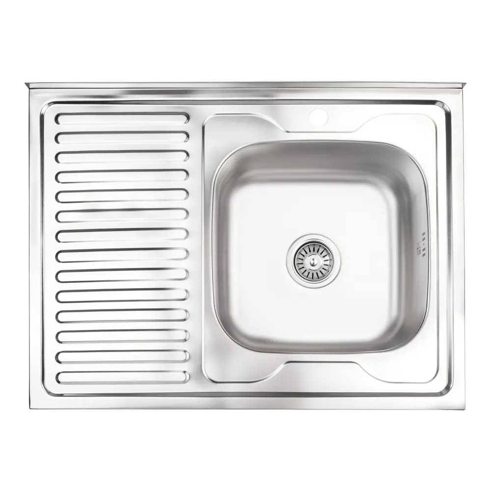 Кухонна мийка Lidz 6080-R 0,8 мм Satin (LIDZ6080RSAT8) виготовлена з нержавіючої сталі харчової марки, тому виріб прослужить довгі роки. Також варто відзначити винятковий дизайн, який прикрасить будь-яку кухню. Відмінна якість та дизайн мийки задовольнять найвибагливі побажання! Мийка виконана з робочою чашею, ребристим крилом для сушіння посуду і розморожування продуктів, отвором для змішувача. Монтується накладним способом в отвір в стільниці.