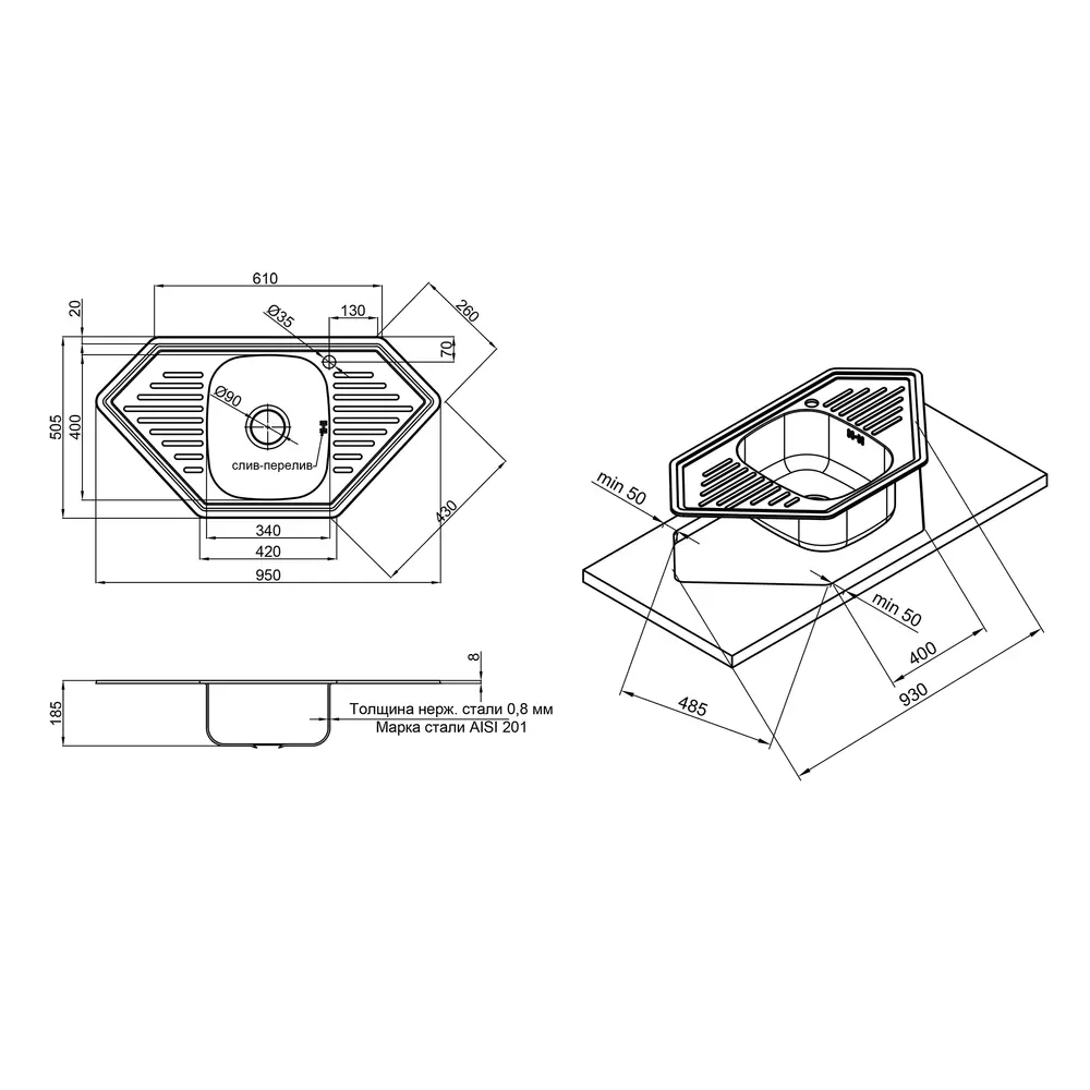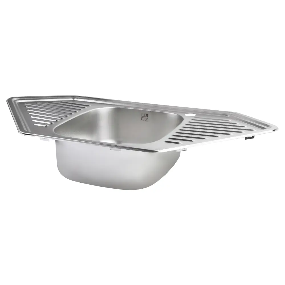 Кухонна мийка Lidz 9550-D 0,8 мм Decor (LIDZ9550DEC08) виготовлена з нержавіючої сталі харчової марки, тому виріб прослужить довгі роки. Також варто відзначити винятковий дизайн, який прикрасить будь-яку кухню. Відмінна якість та дизайн мийки задовольнять найвибагливі побажання! Мийка виконана з двома ребристими крилами для сушіння посуду або розморожування продуктів, отвором для змішувача. Монтується урізним способом в отвір в стільниці.