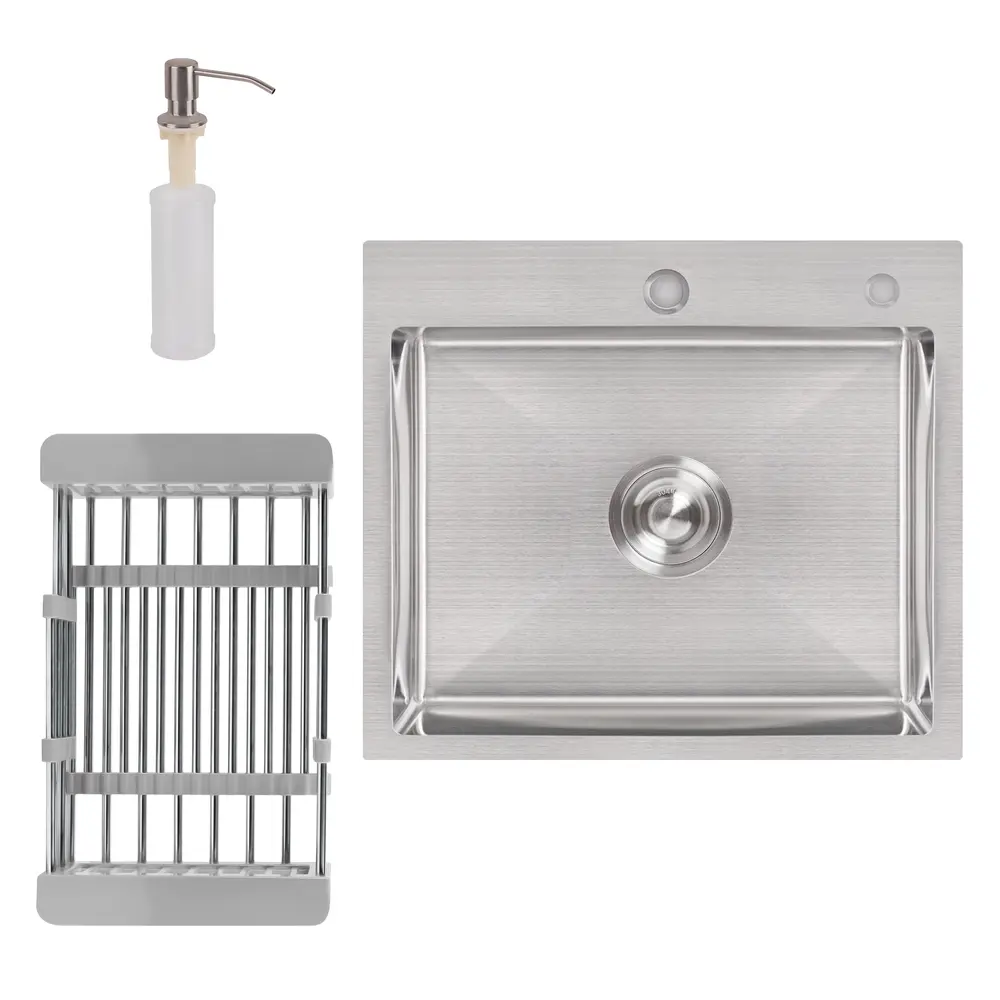 Набір 3 в 1 Lidz кухонна мийка H5045 3.0/1.0 мм Brush + сушарка + дозатор для миючого засобу - комплексне рішення проблеми облаштування мийної зони. Набір включає в себе стильну прямокутну кухонну мийку, виготовлену з міцної нержавіючої сталі, компактну сушарку для посуду і дозатор для миючого засобу. Інтегрована мийка має три варіанти встановлення - врівень зі стільницею, над стільницею (аналогічно урізним мийкам) і під нею.